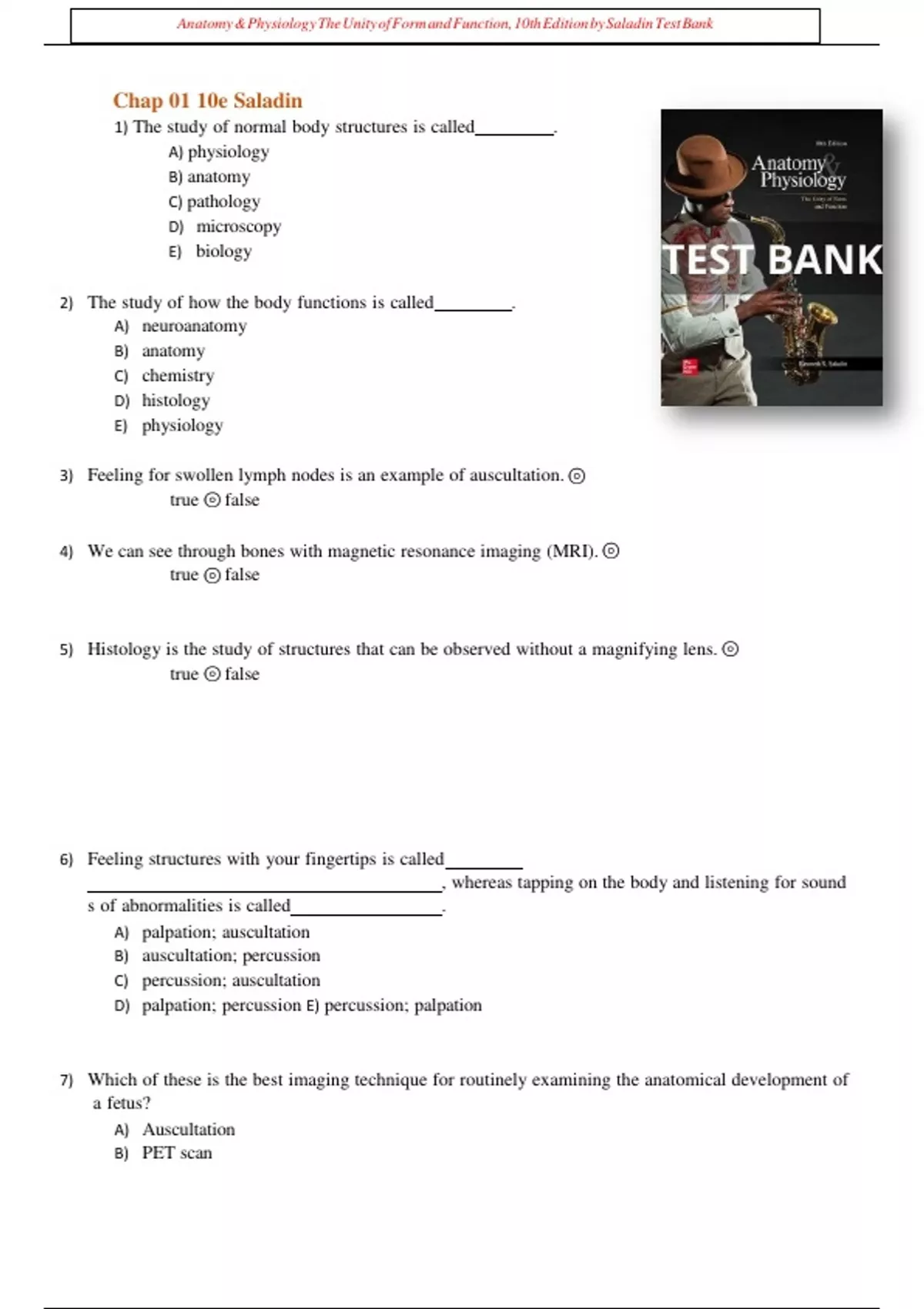 , AnatomyK&KPhysiologyKTheKUnityKofKFormKandKFunction,K10thKEditionKbyKSaladinKTestKBank