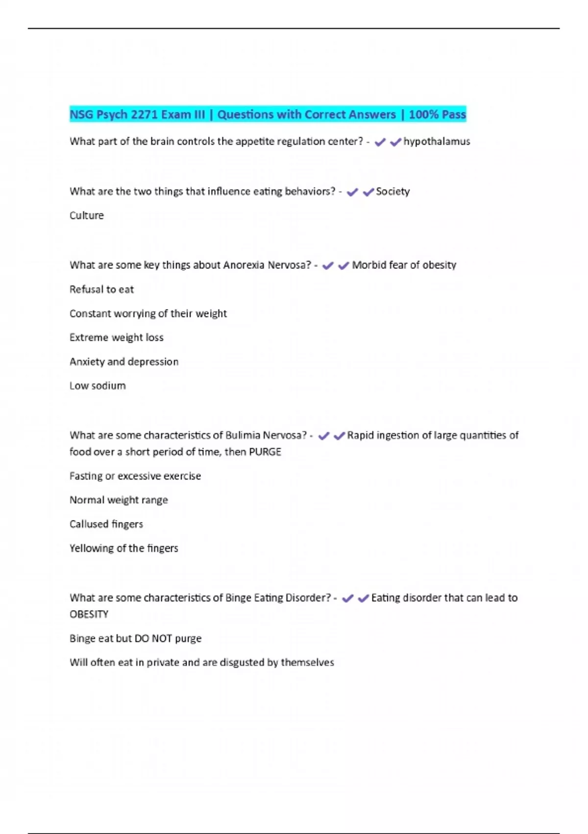 NSG Psych 2271 Exam III | Questions with Correct Answers | 100% Pass