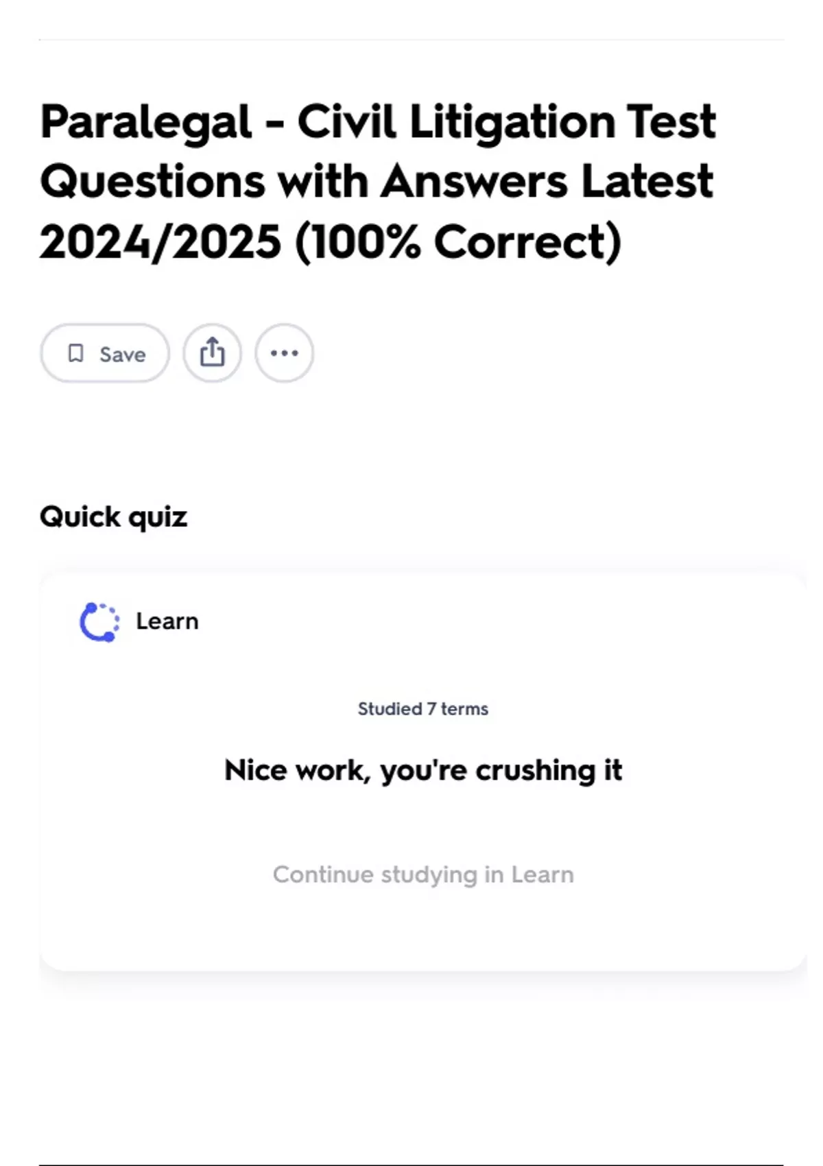 Continue studying in Learn