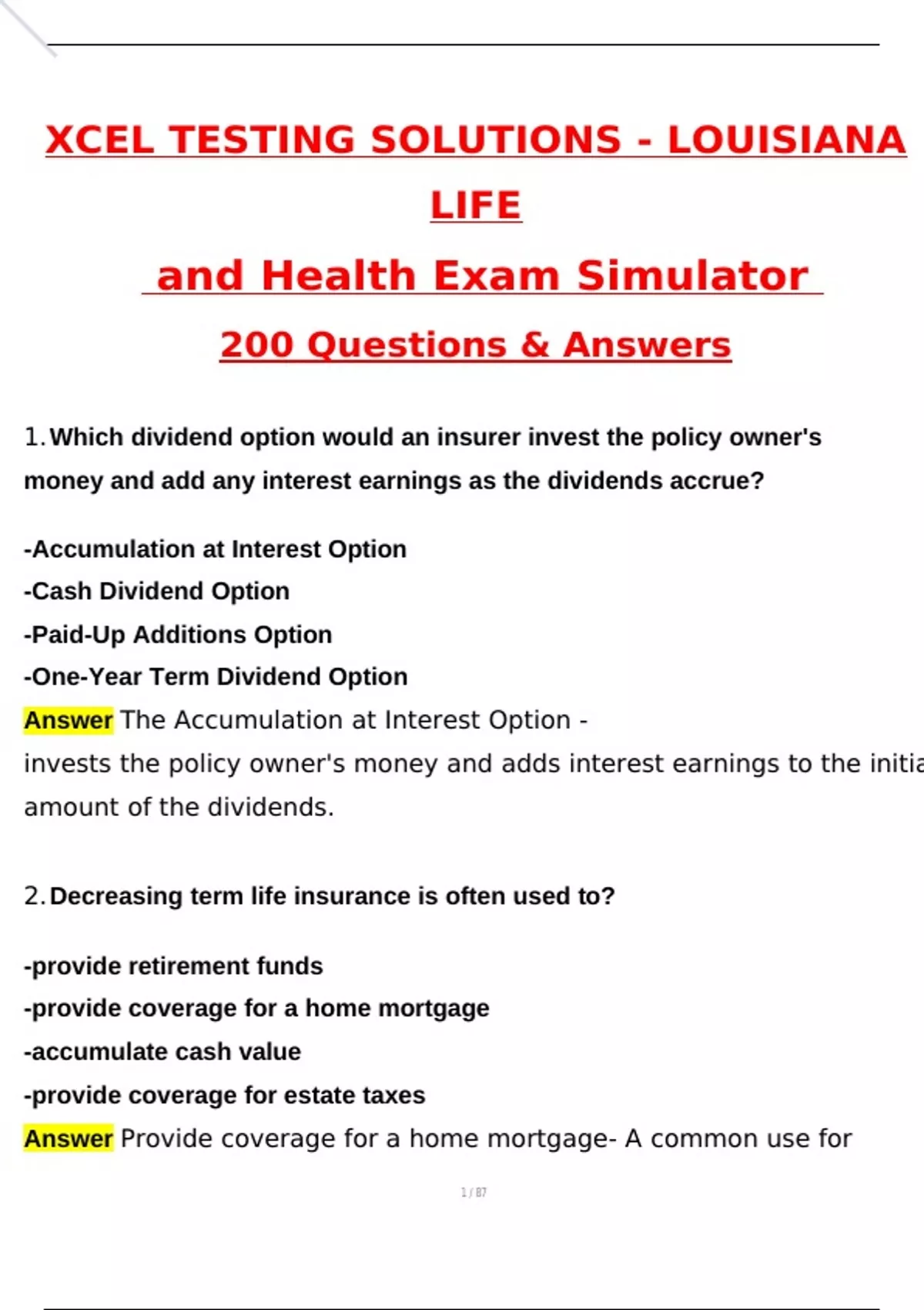 1.Which dividend option would an insurer invest the policy owner's