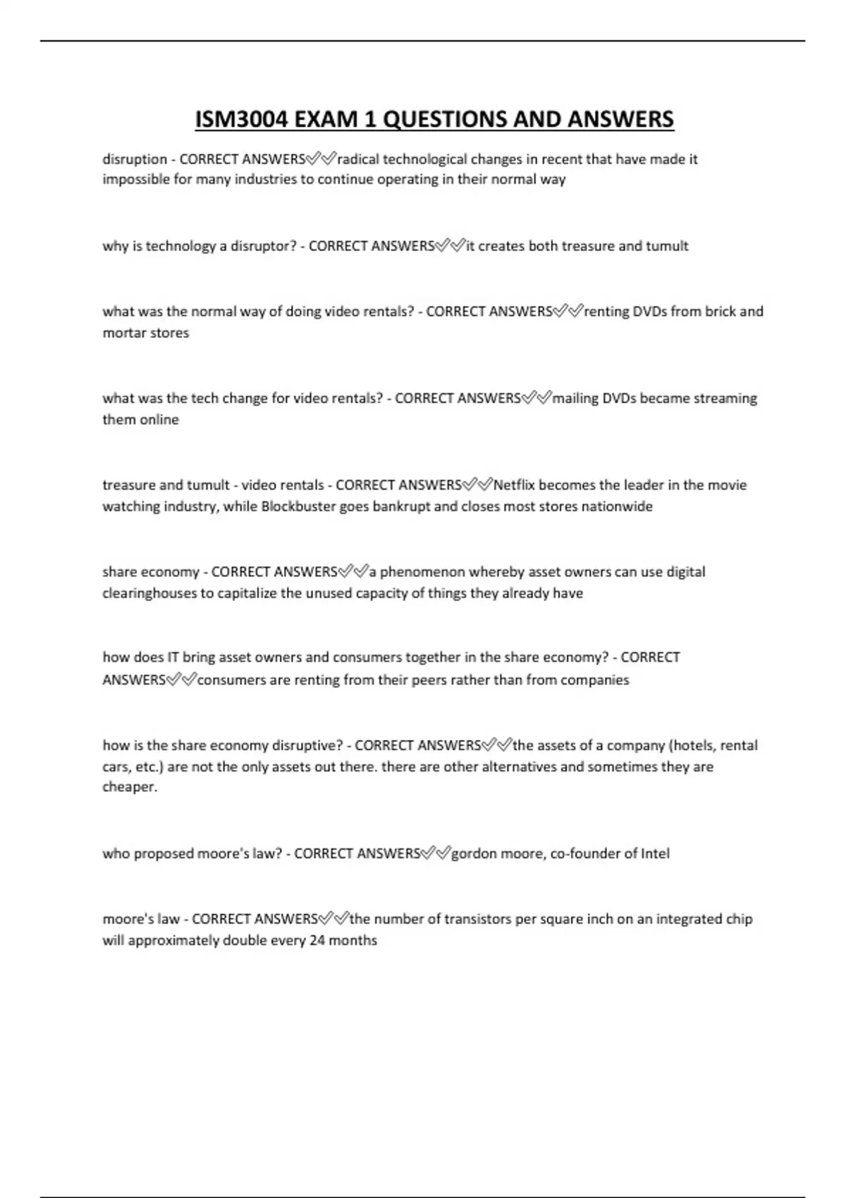 ISM3004 EXAM 1 QUESTIONS AND ANSWERS