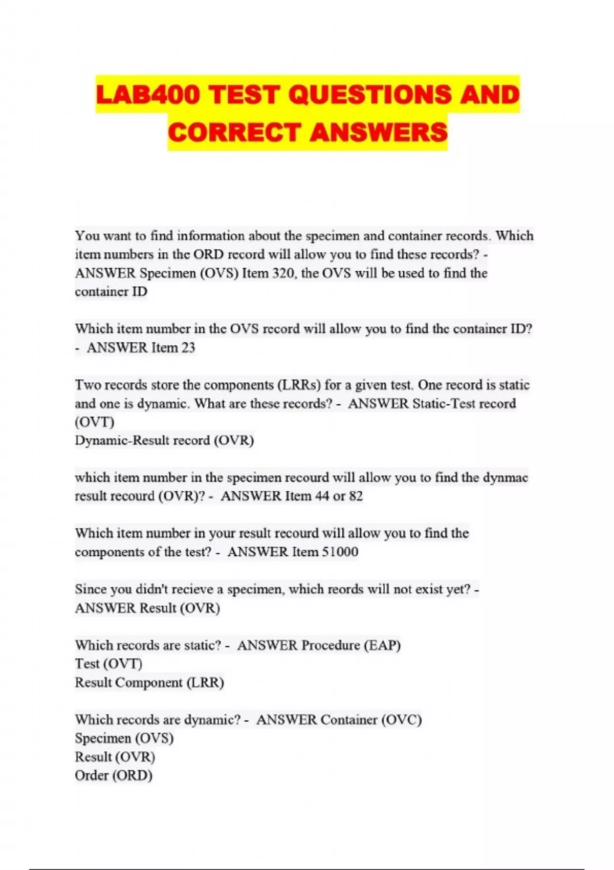 LAB400 TEST QUESTIONS AND CORRECT ANSWERS
