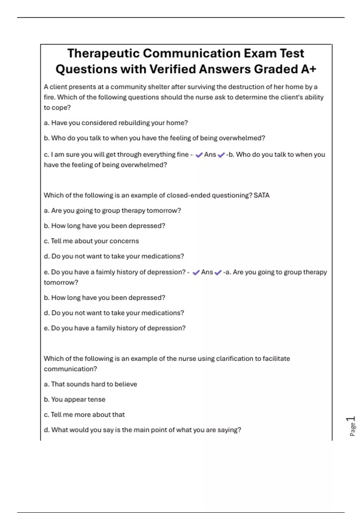 e. Do you have a faimly history of depression? - Ans -a. Are you going to group therapy