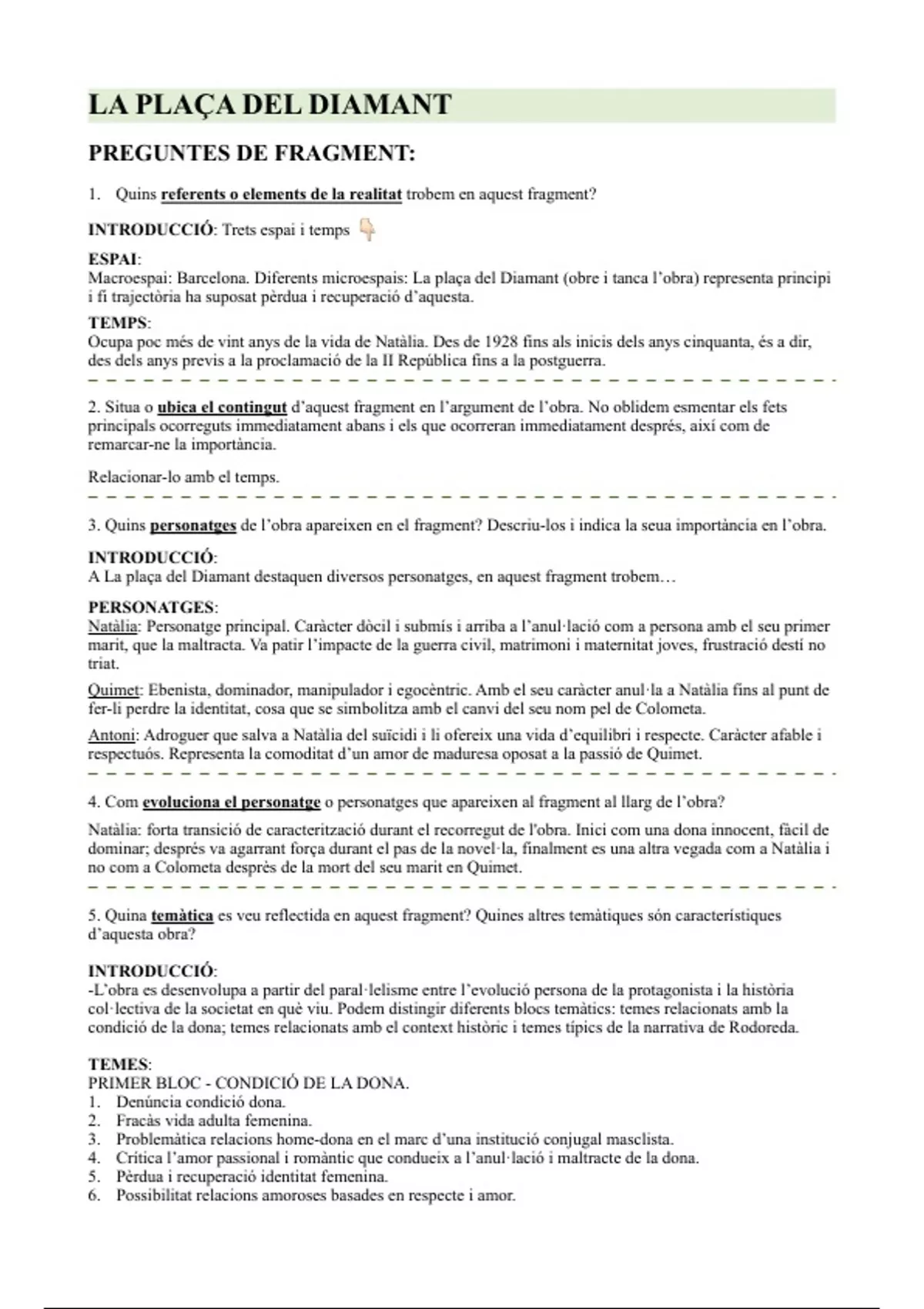 A La plaça del Diamant destaquen diversos personatges, en aquest fragment trobem…