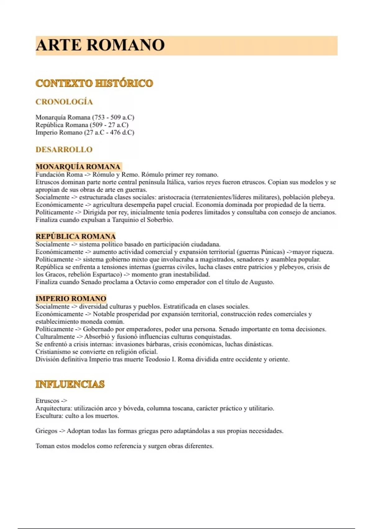 • Síntesis de elementos griegos y etruscos -> Arquitectura adintelada / Arco y bóveda.
