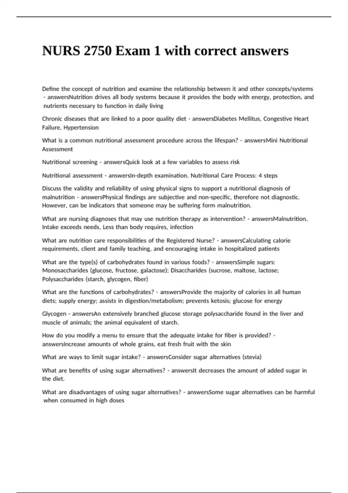 NURS 2750 Exam 1 with correct answers