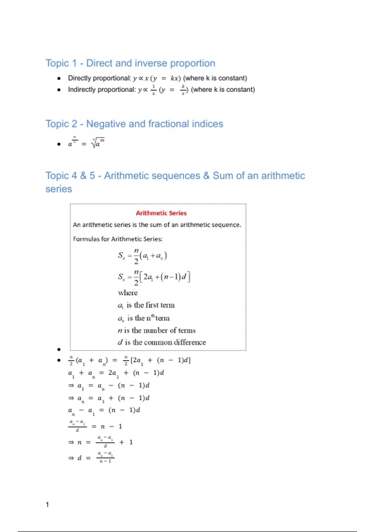 Topic 4 & 5 - Arithmetic sequences & Sum of an arithmetic