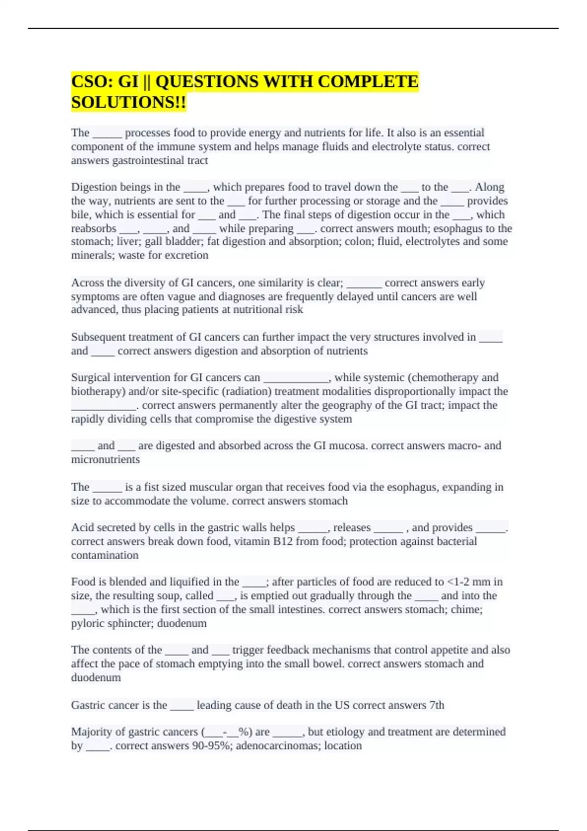 answers gastrointestinal tract