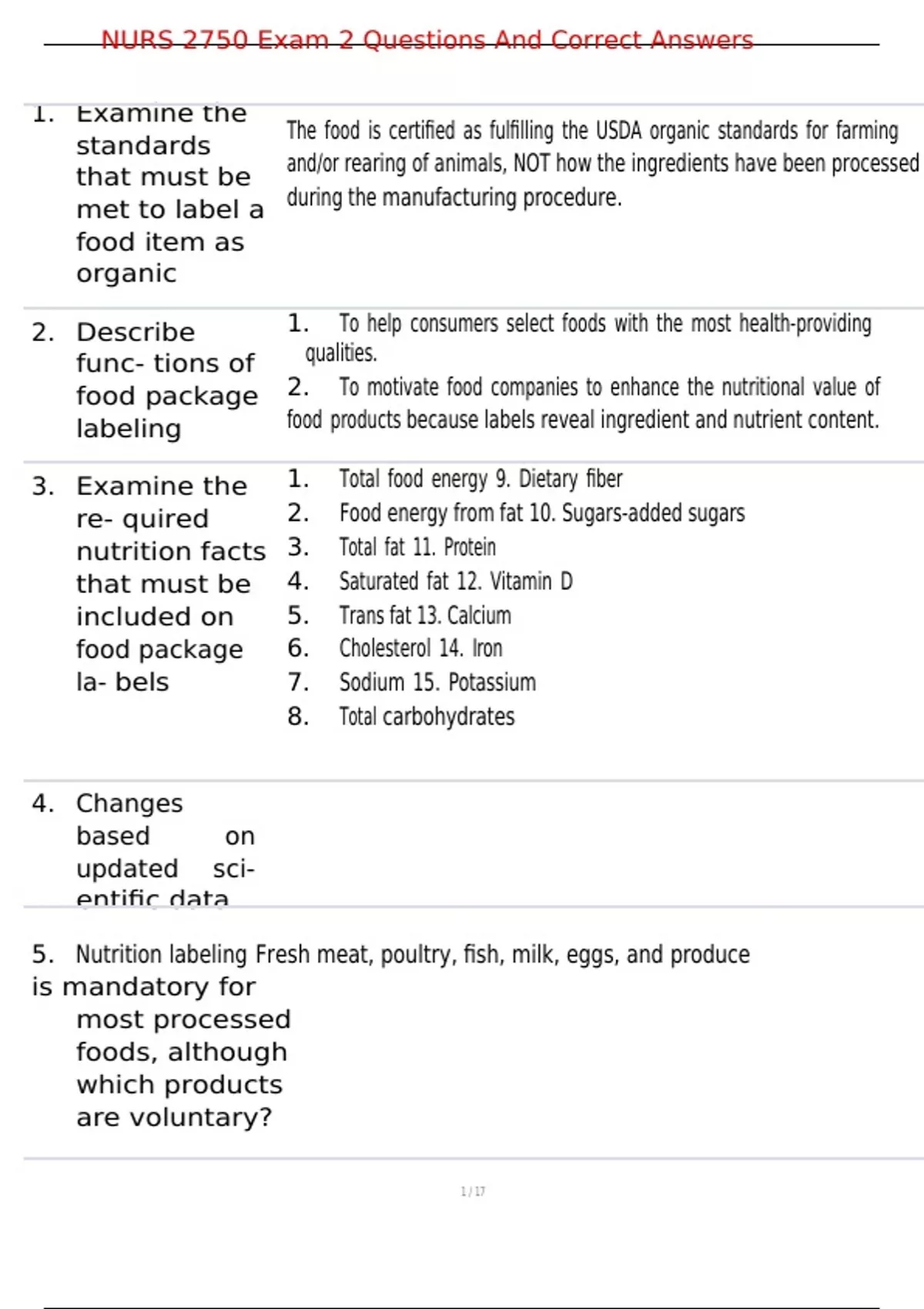 5. Nutrition labeling Fresh meat, poultry, fish, milk, eggs, and produce
