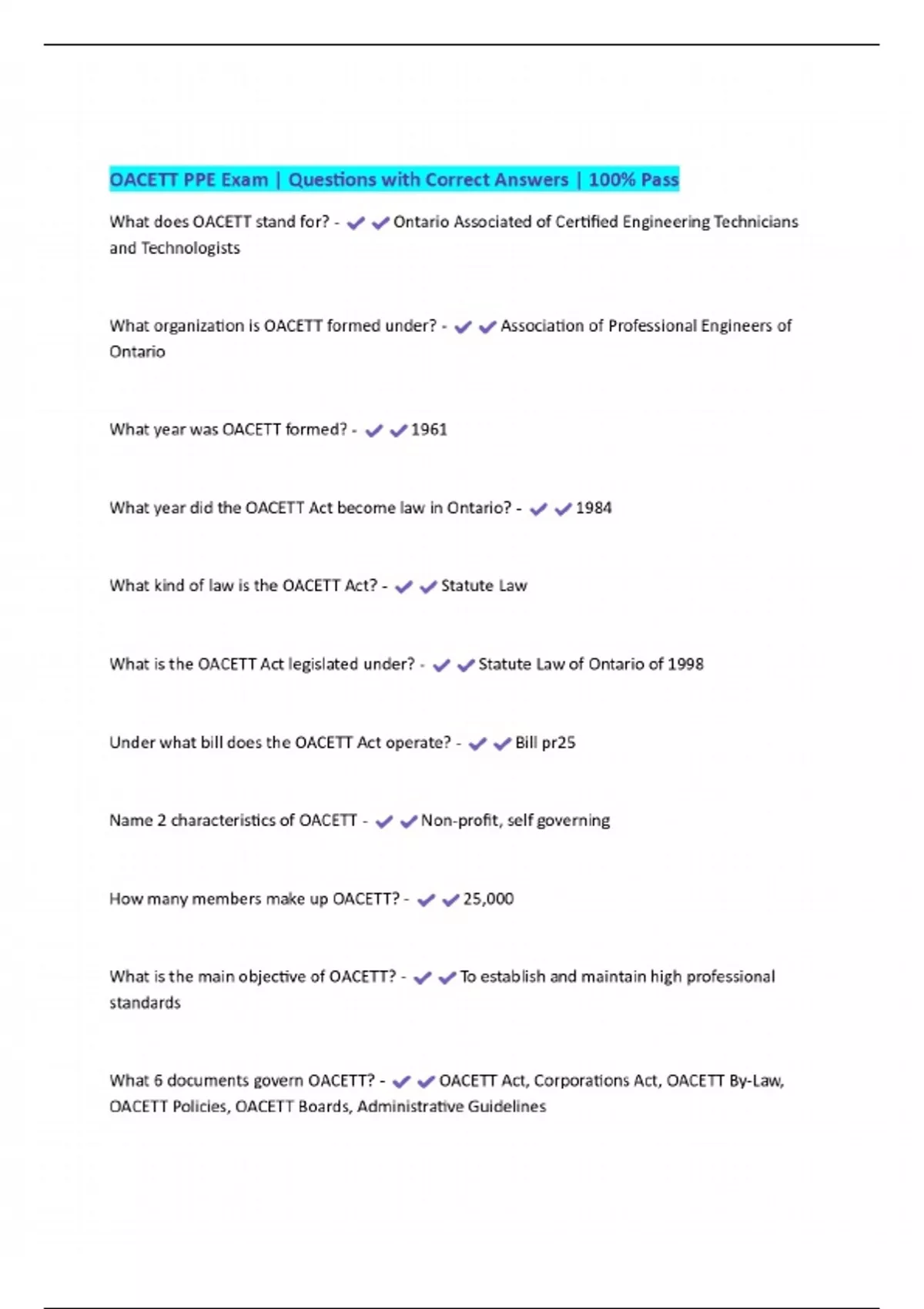 OACETT PPE Exam | Questions with Correct Answers | 100% Pass