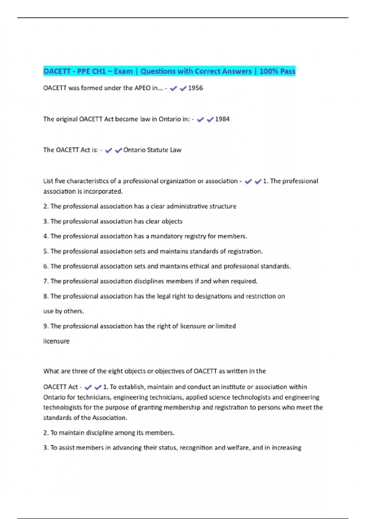 OACETT - PPE CH1 – Exam | Questions with Correct Answers | 100% Pass