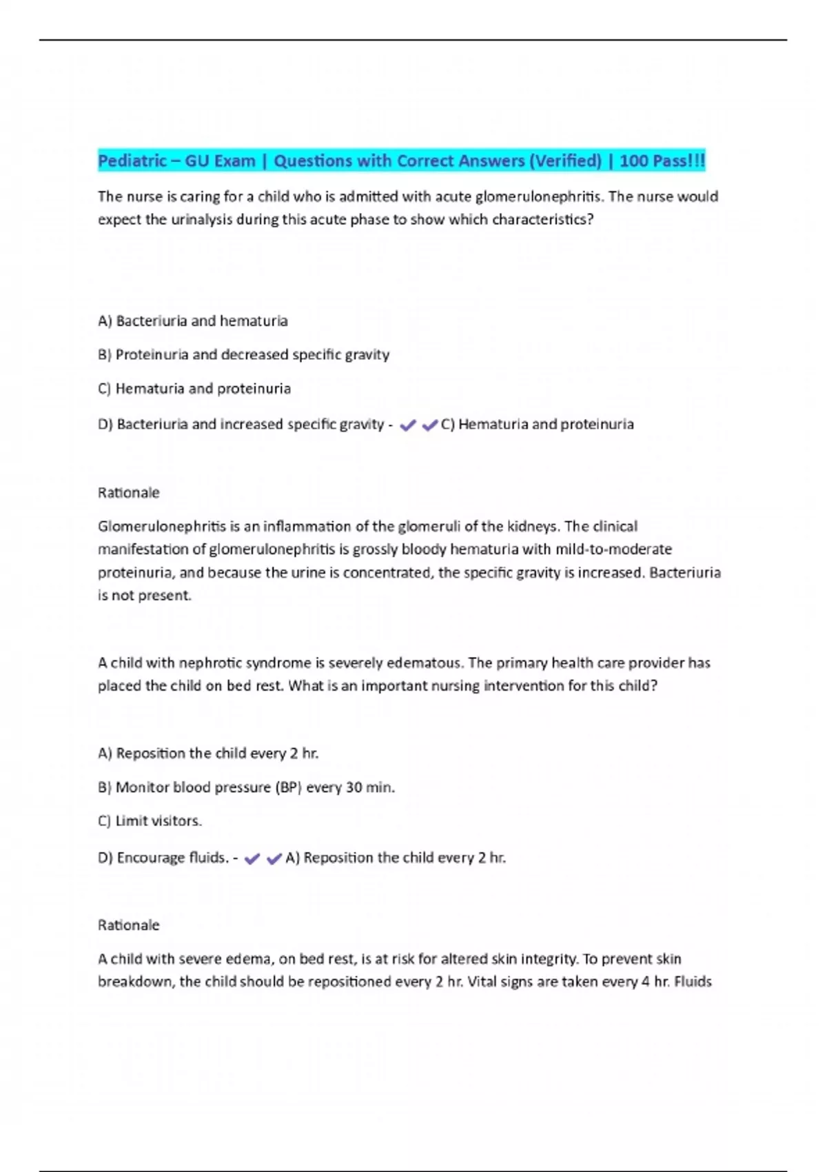 Pediatric – GU Exam | Questions with Correct Answers (Verified) | 100 Pass!!!