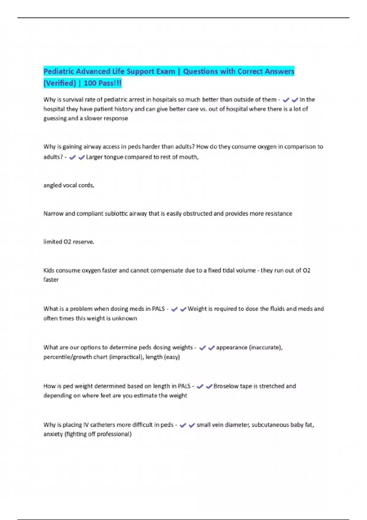 Pediatric Advanced Life Support Exam | Questions with Correct Answers (Verified) | 100 Pass!!!
