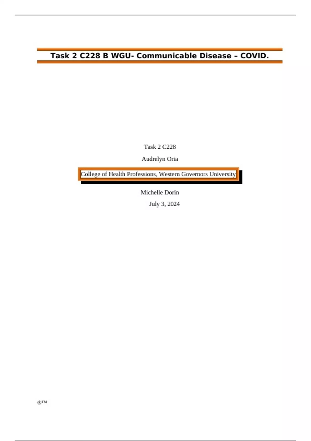 Task 2 C228 B WGU- Communicable Disease – COVID.