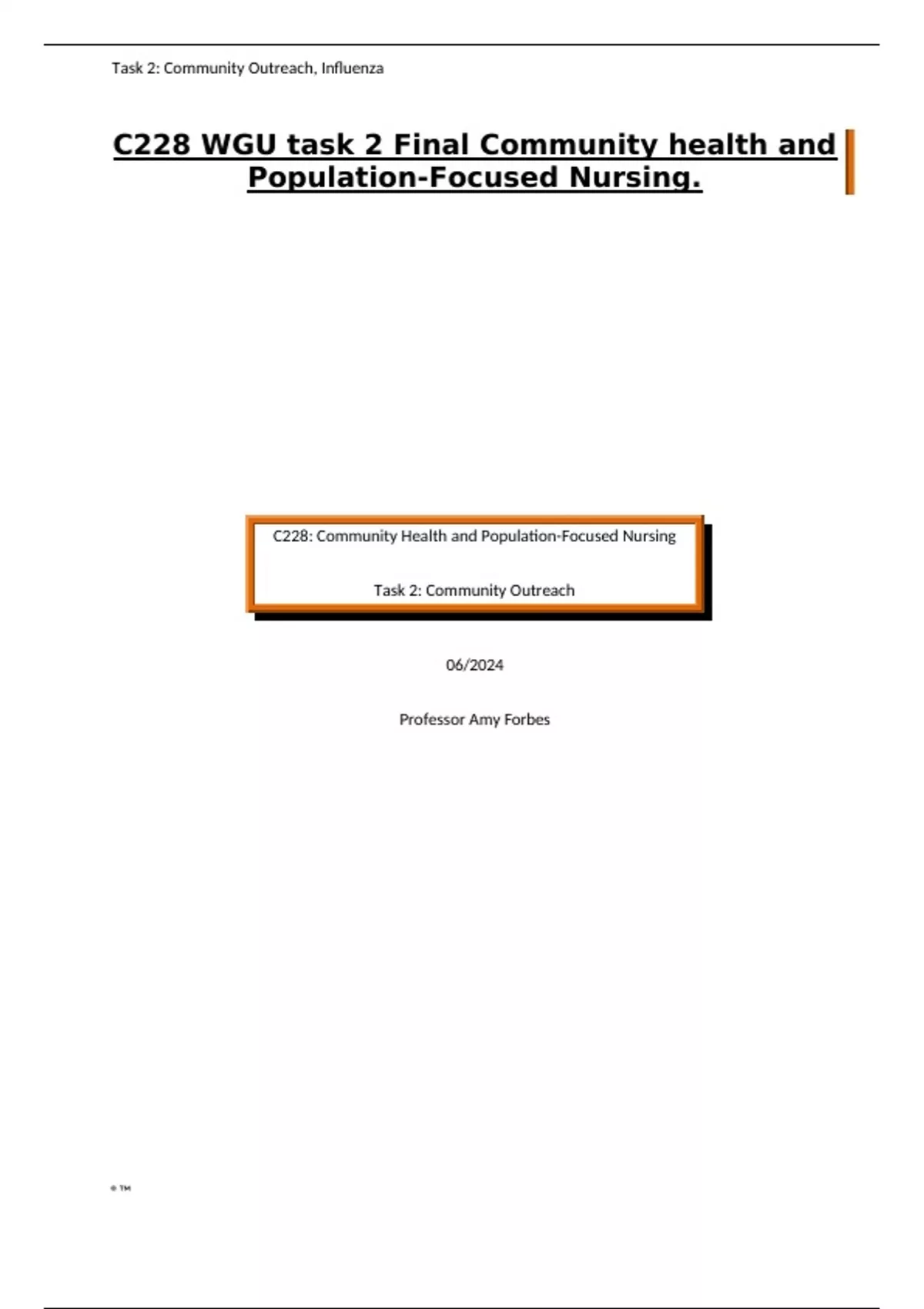 C228 WGU task 2 Final Community health and