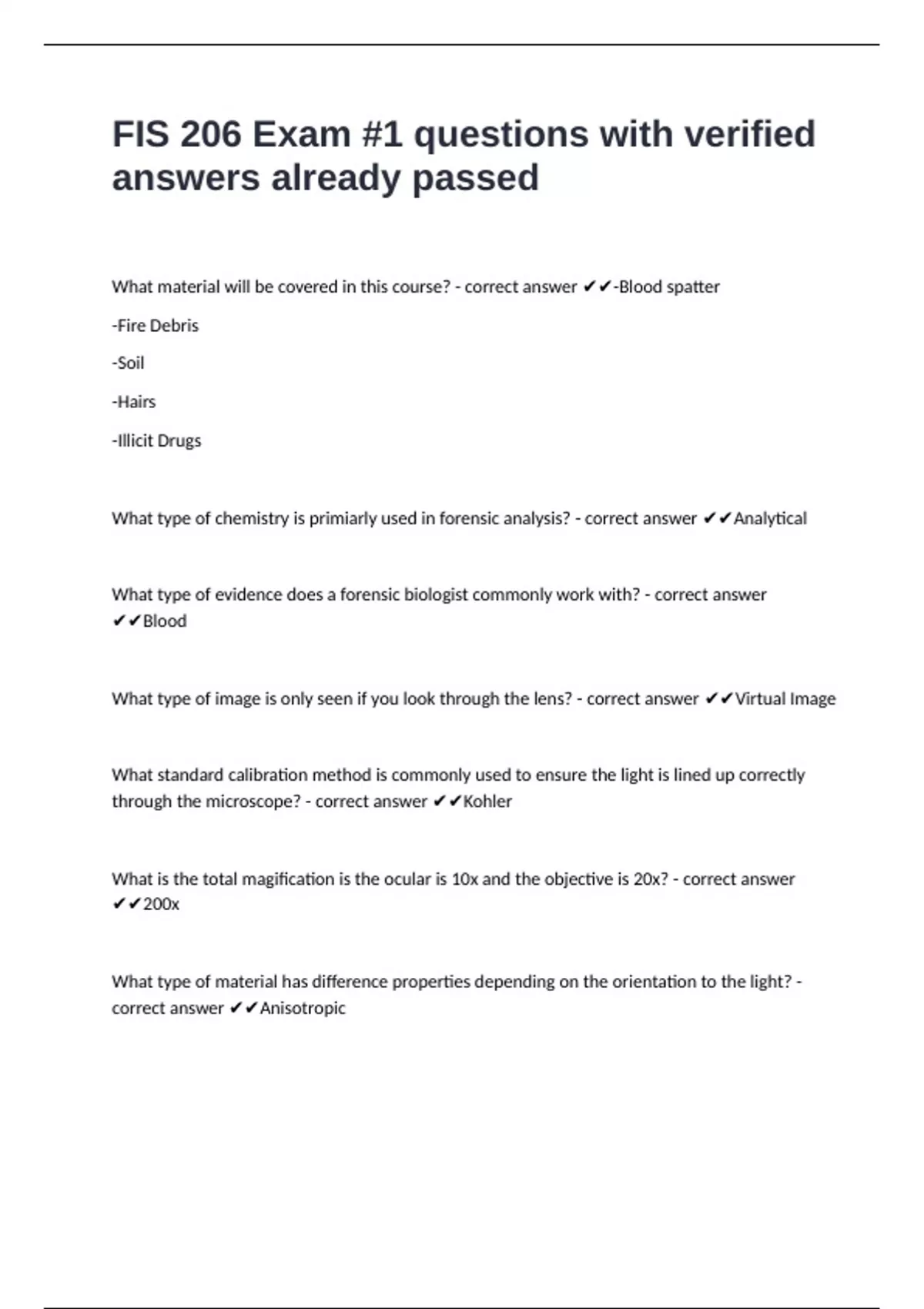 What material will be covered in this course? - correct answer ✔✔-Blood spatter