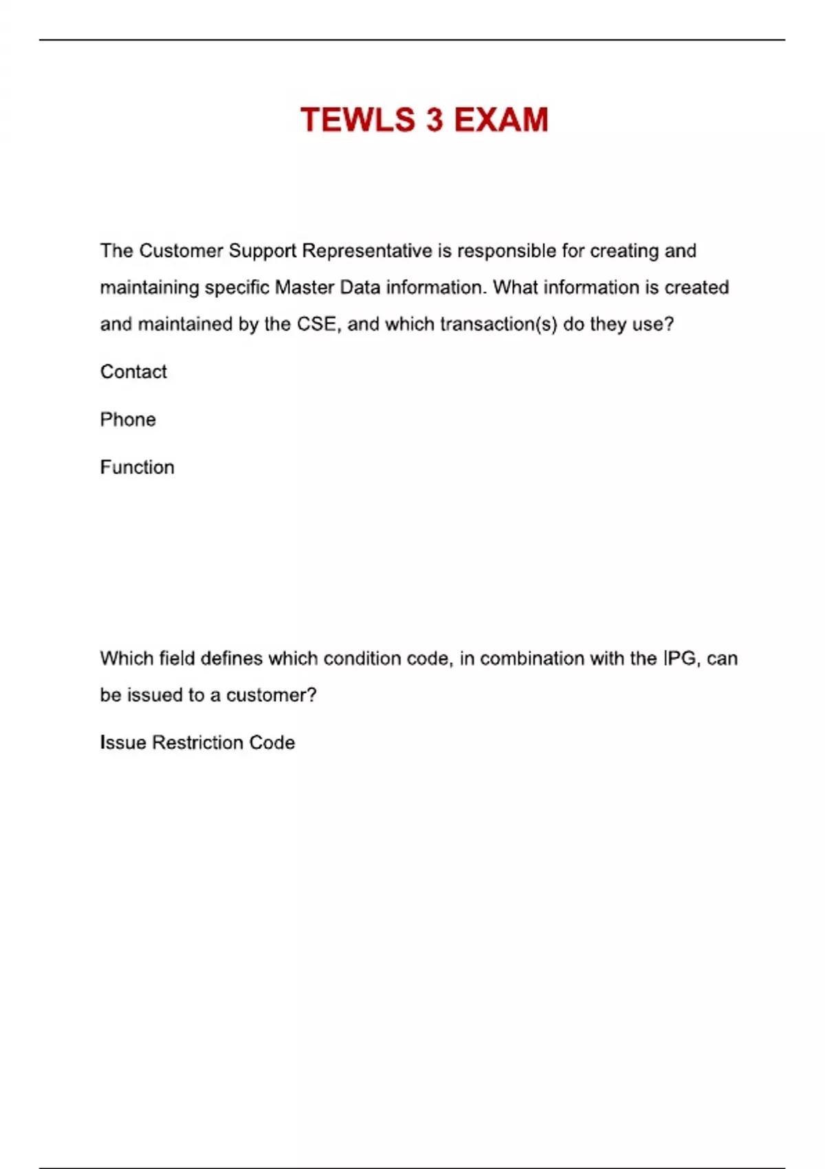 tewls 3 exam update questions with