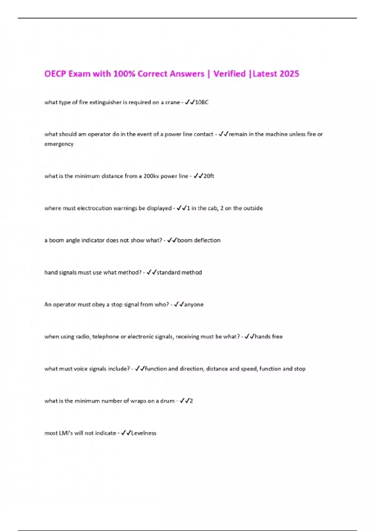 oecp exam with 100 correct answers verified la