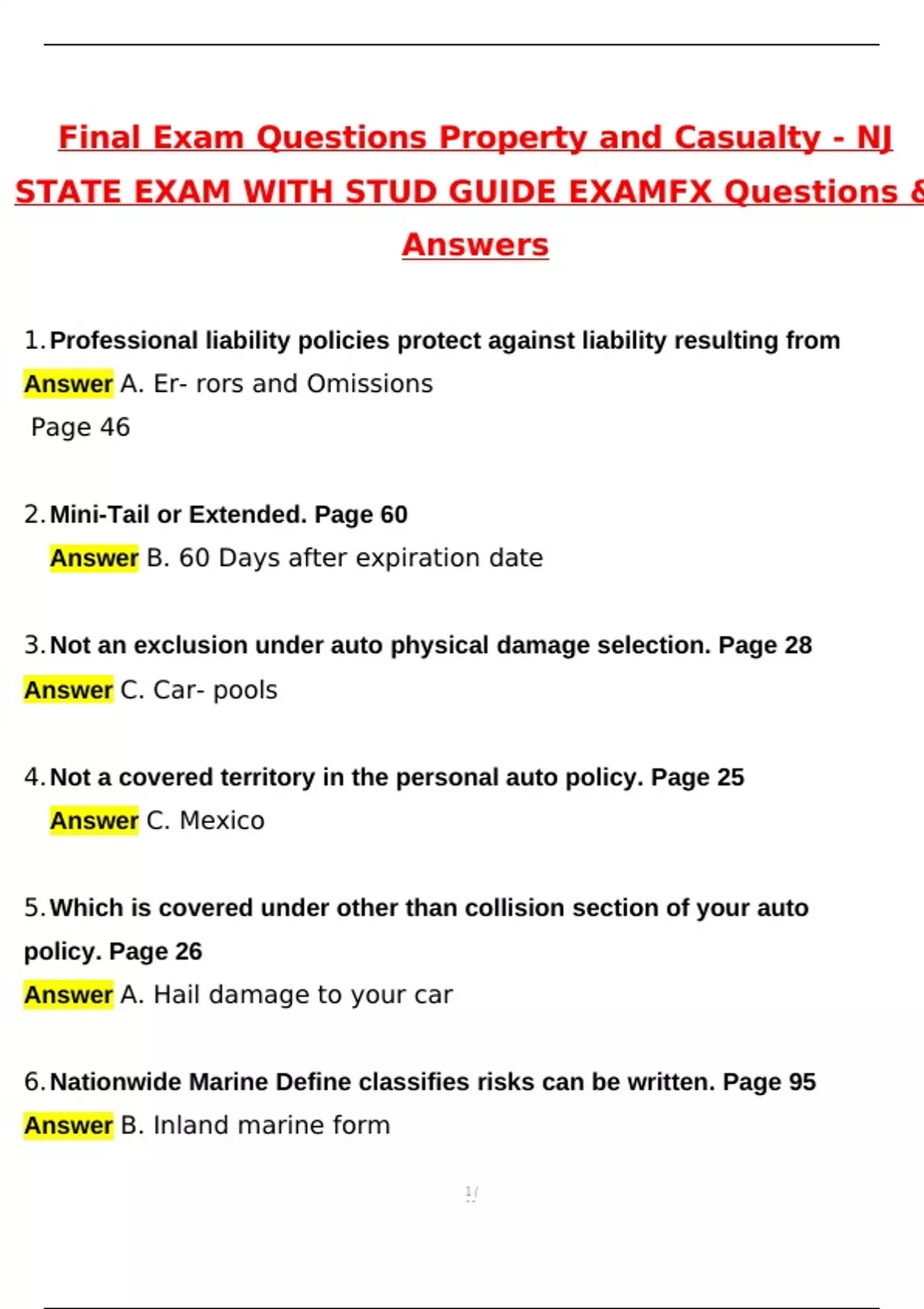 6.Nationwide Marine Define classifies risks can be written. Page 95
