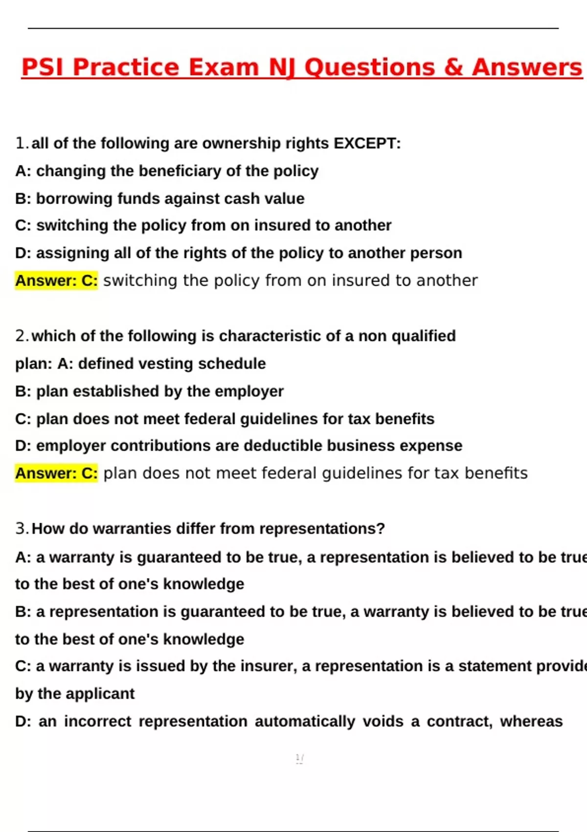Answer A: a warranty is guaranteed to be true, a representation is