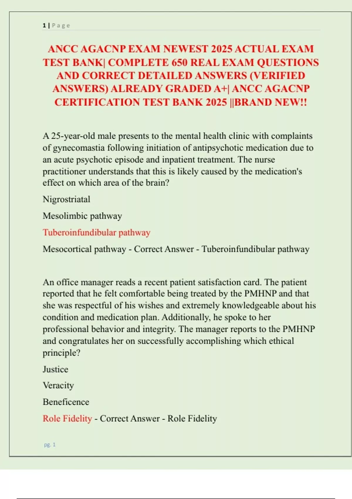 ANCC AGACNP EXAM NEWEST 2025 ACTUAL EXAM TEST BANK| COMPLETE 650 REAL EXAM QUESTIONS AND CORRECT DETAILED ANSWERS (VERIFIED ANSWERS) ALREADY GRADED A+| ANCC AGACNP CERTIFICATION TEST BANK 2025 ||BRAND NEW!!
