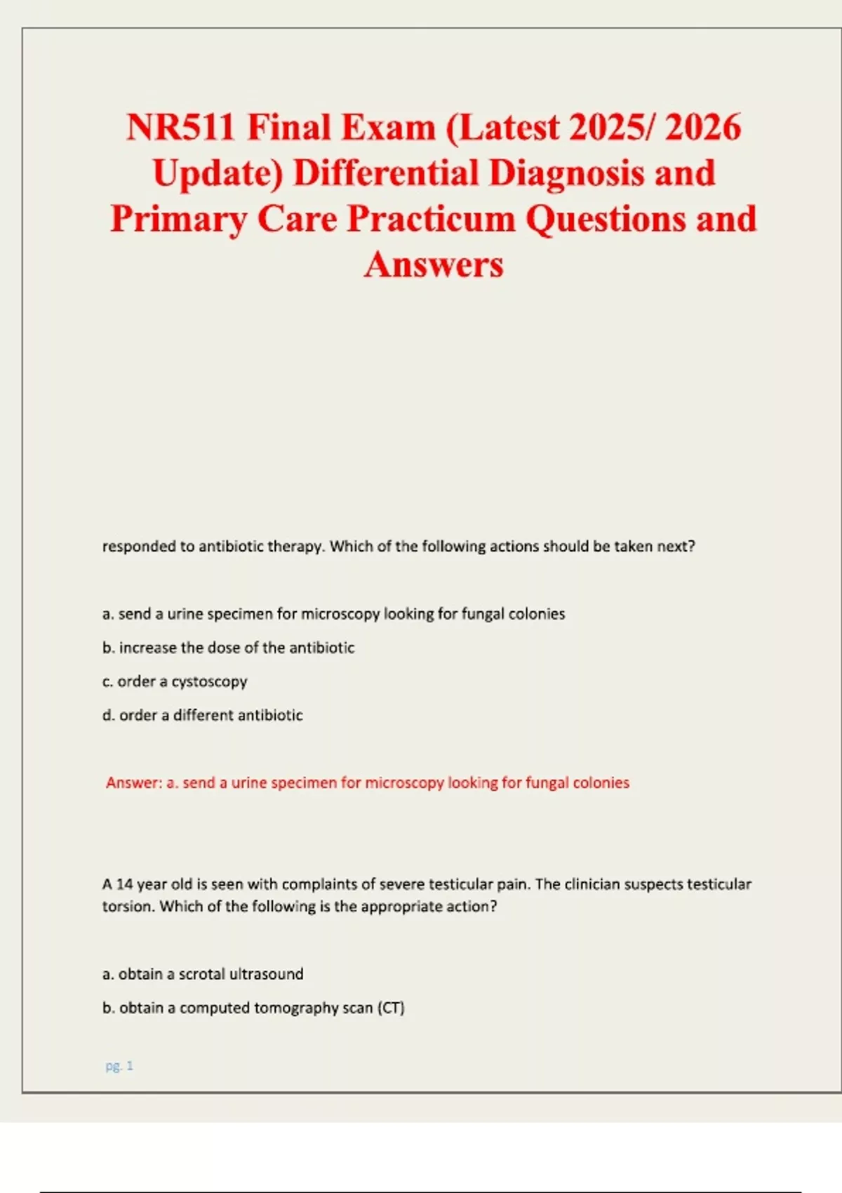 NR511 Final Exam (Newest 2025/ 2026 Update) Differential Diagnosis & Primary Care Practicum Actual Exam Questions And Answers Graded A+.