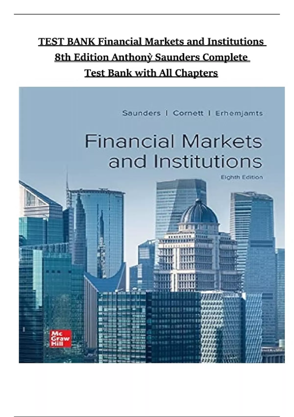 Test Bank for Financial Markets and Institutions, 8th Edition by Anthony Saunders – Complete Chapter Coverage with Verified Answers | 2025 Edition complete Test Bank for Financial Markets and Institutions, 8th Edition by Anthony Saunders. Financial Markets and Institutions (8th Edition) – Anthony Saunders | Complete Test Bank with Answers for All Chapters. Financial Markets and Institutions 8th Edition Saunders test bank PDF download. Anthony Saunders Financial Markets test bank 2025 edition answers. Complete chapter solutions Financial Markets and Institutions Saunders 8th. Verified answers Financial Markets test bank 8th Edition Anthony Saunders. Financial Markets and Institutions 8th Edition test bank all chapters. Saunders Financial Markets 2025 Edition test bank with explanations. Financial Markets and Institutions 8th Edition practice questions and answers. Anthony Saunders test bank Financial Markets updated 2025 version. Financial Markets 8th Edition Saunders chapter-by-chapter solutions. Test bank for Financial Markets and Institutions 8th Edition online access. Saunders Financial Markets 8th Edition exam prep materials. Financial Markets and Institutions test bank 2025 Edition full coverage. Anthony Saunders 8th Edition Financial Markets study guide with answers. Financial Markets test bank 8th Edition Saunders instant download. Comprehensive solutions Financial Markets and Institutions Saunders 2025. Financial Markets 8th Edition test bank multiple choice questions. Saunders Financial Markets and Institutions test bank true/false answers. Anthony Saunders Financial Markets 8th Edition test bank essay questions. Financial Markets test bank 2025 Edition Saunders with answer explanations. Test bank for Financial Markets 8th Edition Saunders instructor resources. Saunders Financial Markets and Institutions 8th Edition review questions. Financial Markets test bank 2025 Edition Saunders chapter summaries. Anthony Saunders 8th Edition Financial Markets practice exams with answers. Financial Markets and Institutions Saunders test bank updated for 2025. Complete test bank Financial Markets 8th Edition Saunders with solutions-This document is a comprehensive test bank for Financial Markets and Institutions (8th Edition) by Anthony Saunders. It includes verified multiple-choice questions, true/false items, and short-answer questions covering all chapters of the textbook. Each question is accompanied by accurate answer keys, making it ideal for exam preparation and self-assessment. The material aligns with core topics such as interest rates, bond pricing, monetary policy, financial intermediaries, and market structures.
