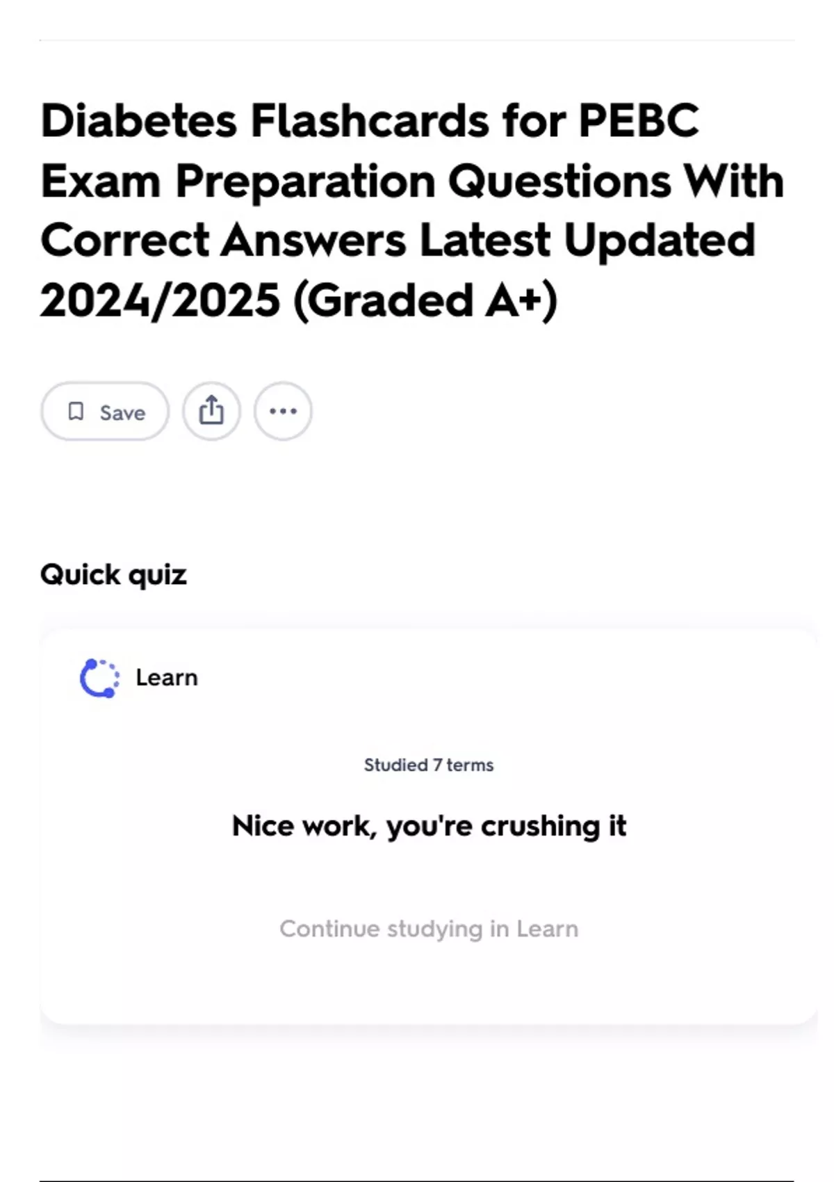 Diabetes Flashcards for PEBC Exam Preparation Questions With Correct Answers Latest Updated 2024/2025 (Graded A+)
