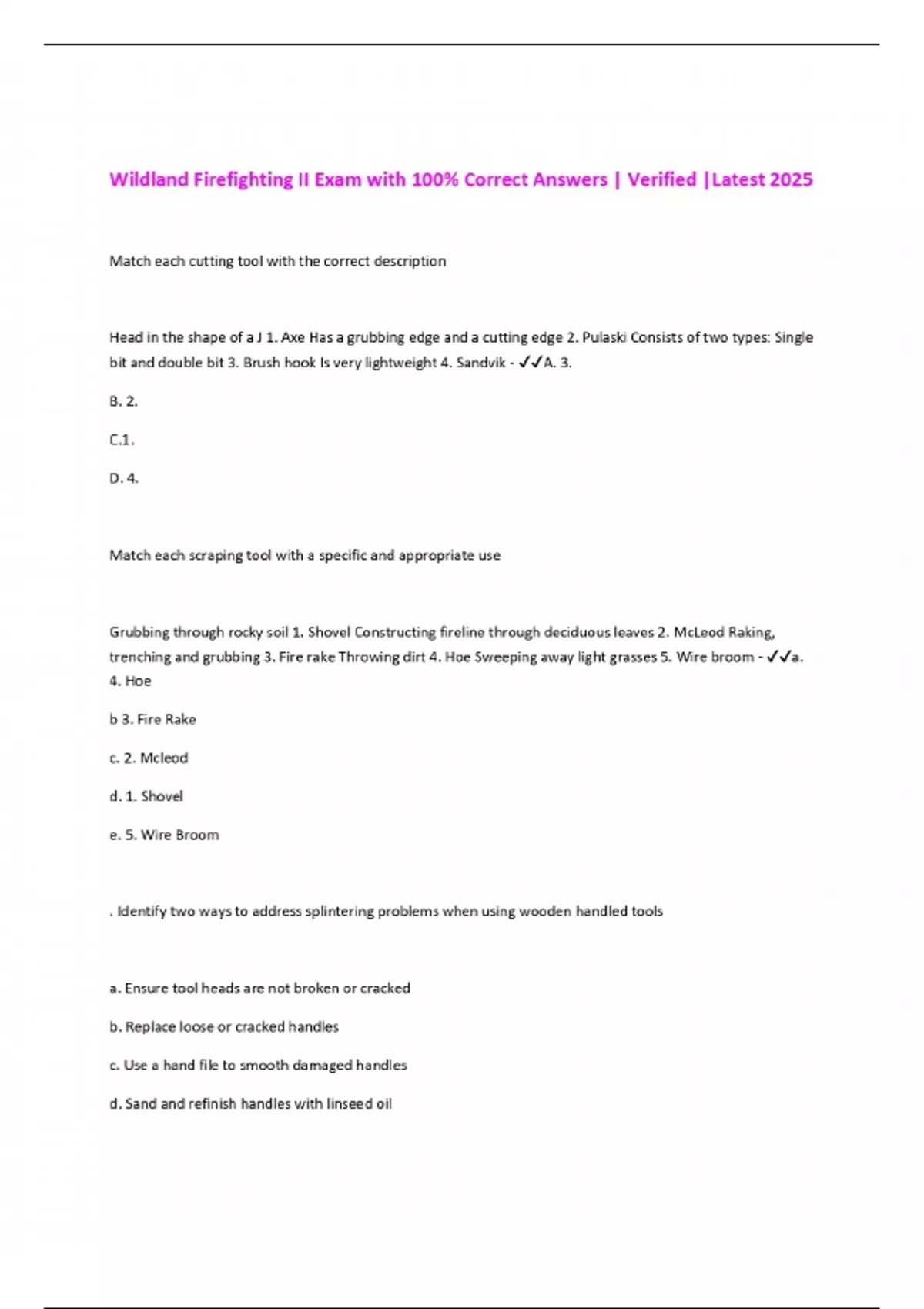 Wildland Firefighting II Exam with 100% Correct Answers | Verified |Latest 2025