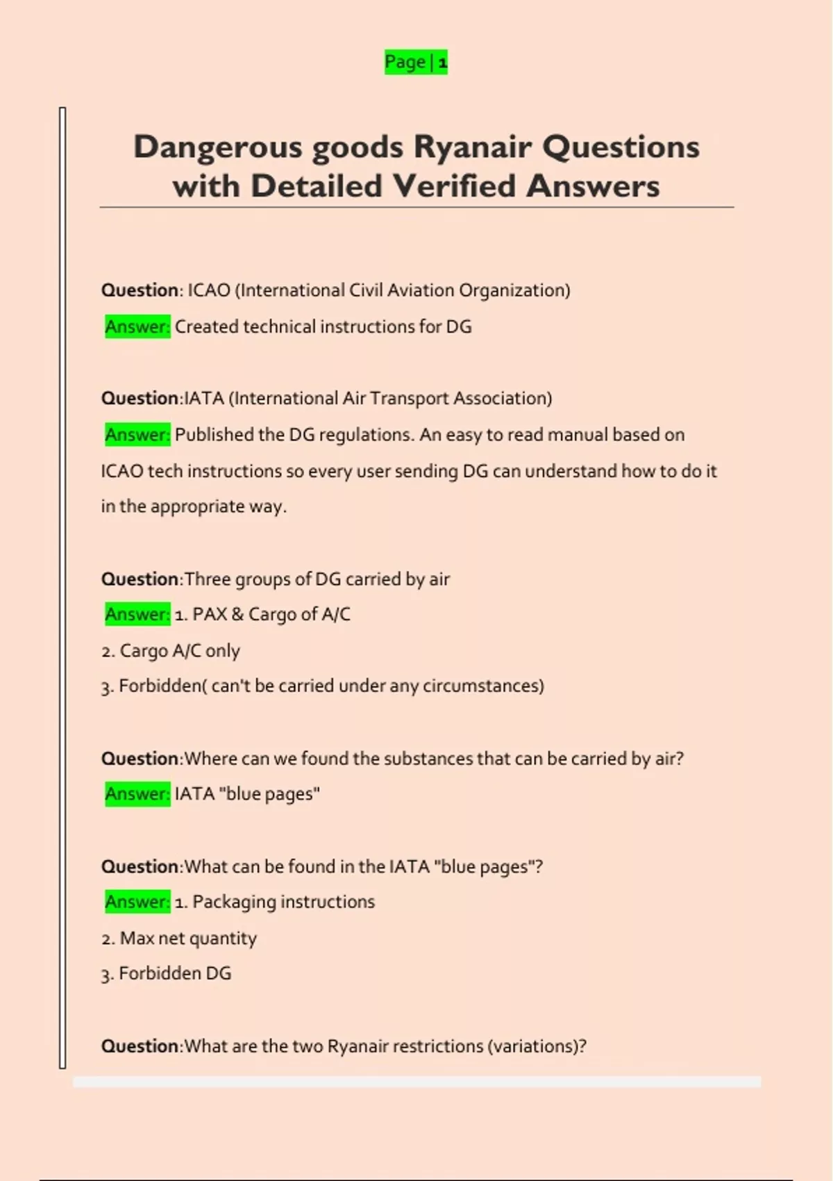 Dangerous goods Ryanair Questions