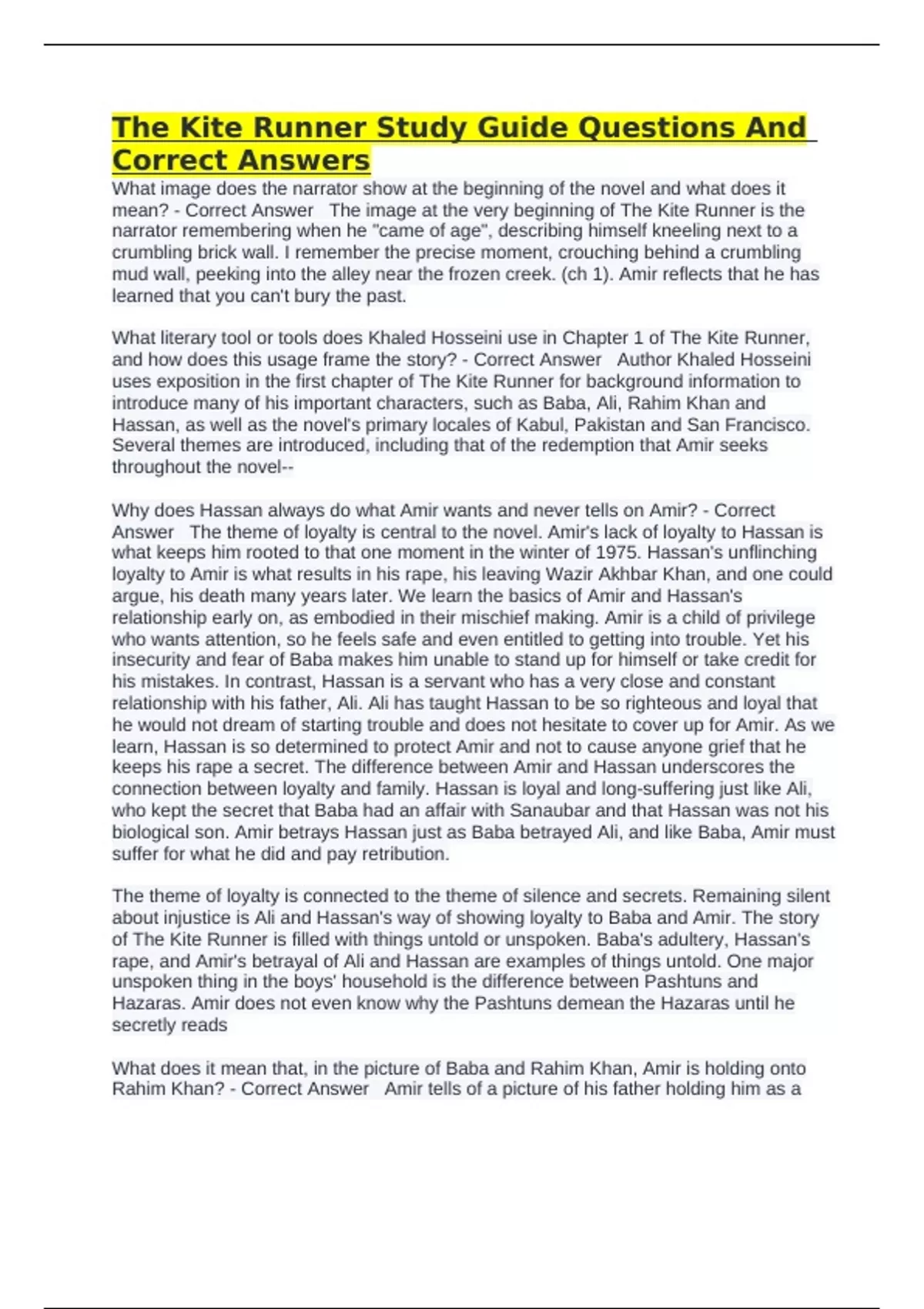 mean? - Correct Answer The image at the very beginning of The Kite Runner is the