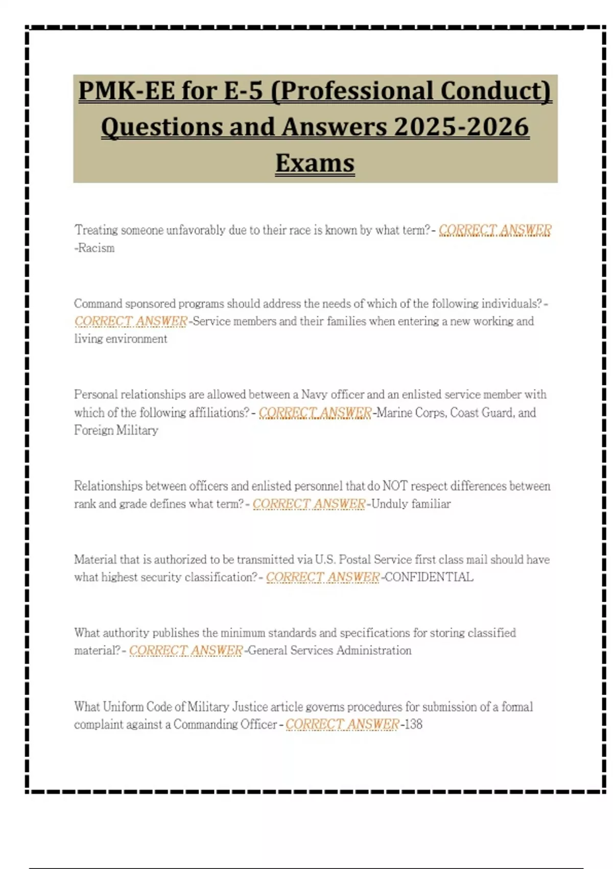 PMK-EE for E-5 (Professional Conduct) Questions and Answers Exams