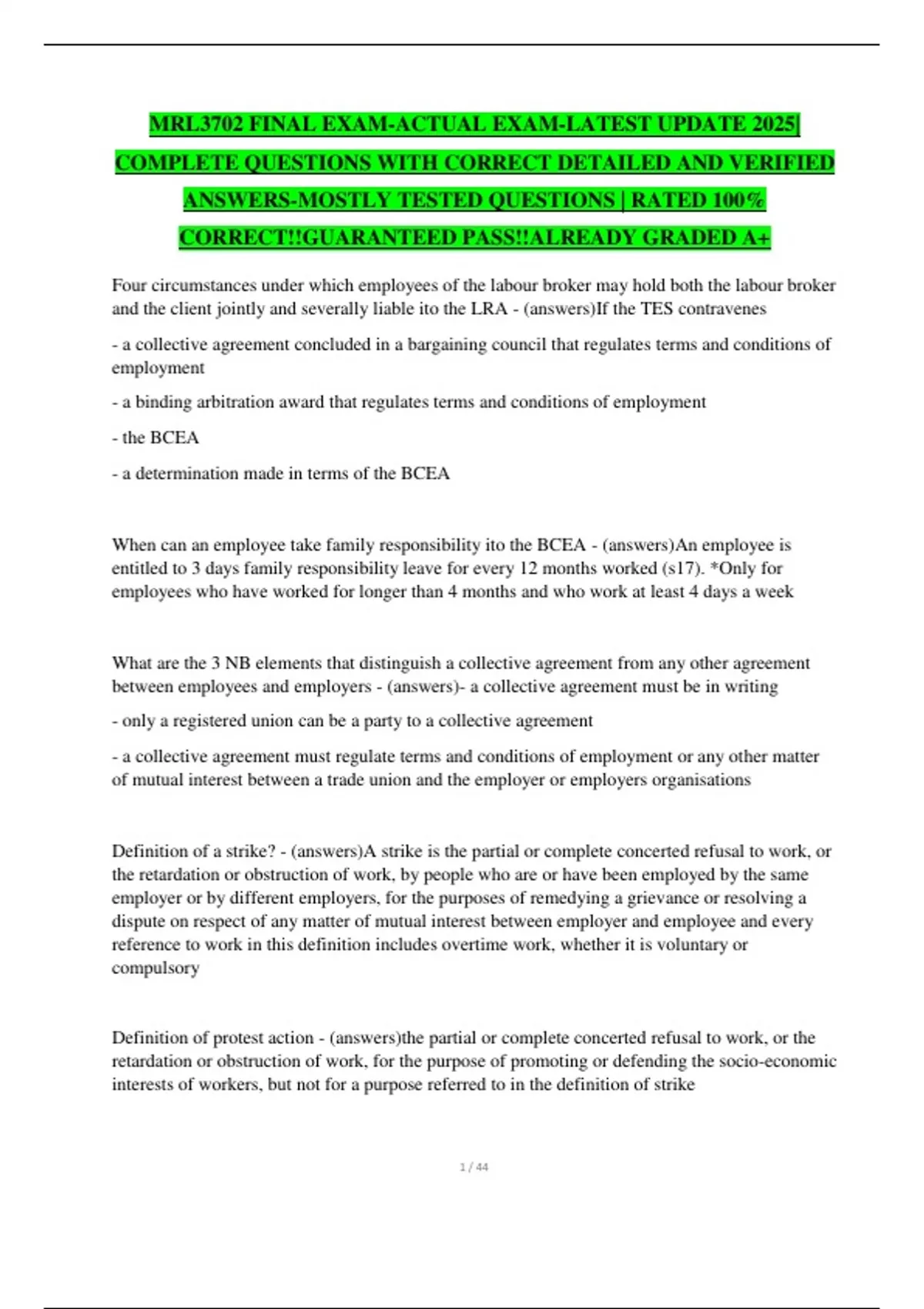 MRL3702 FINAL EXAM-ACTUAL EXAM-LATEST UPDATE 2025| COMPLETE QUESTIONS WITH CORRECT DETAILED AND VERIFIED ANSWERS-MOSTLY TESTED QUESTIONS | RATED 100% CORRECT!!GUARANTEED PASS!!ALREADY GRADED A+