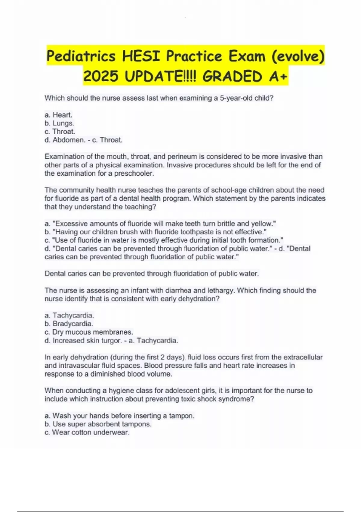 Pediatrics HESI Practice Exam (evolve) 2025 UPDATE!!!! GRADED A+