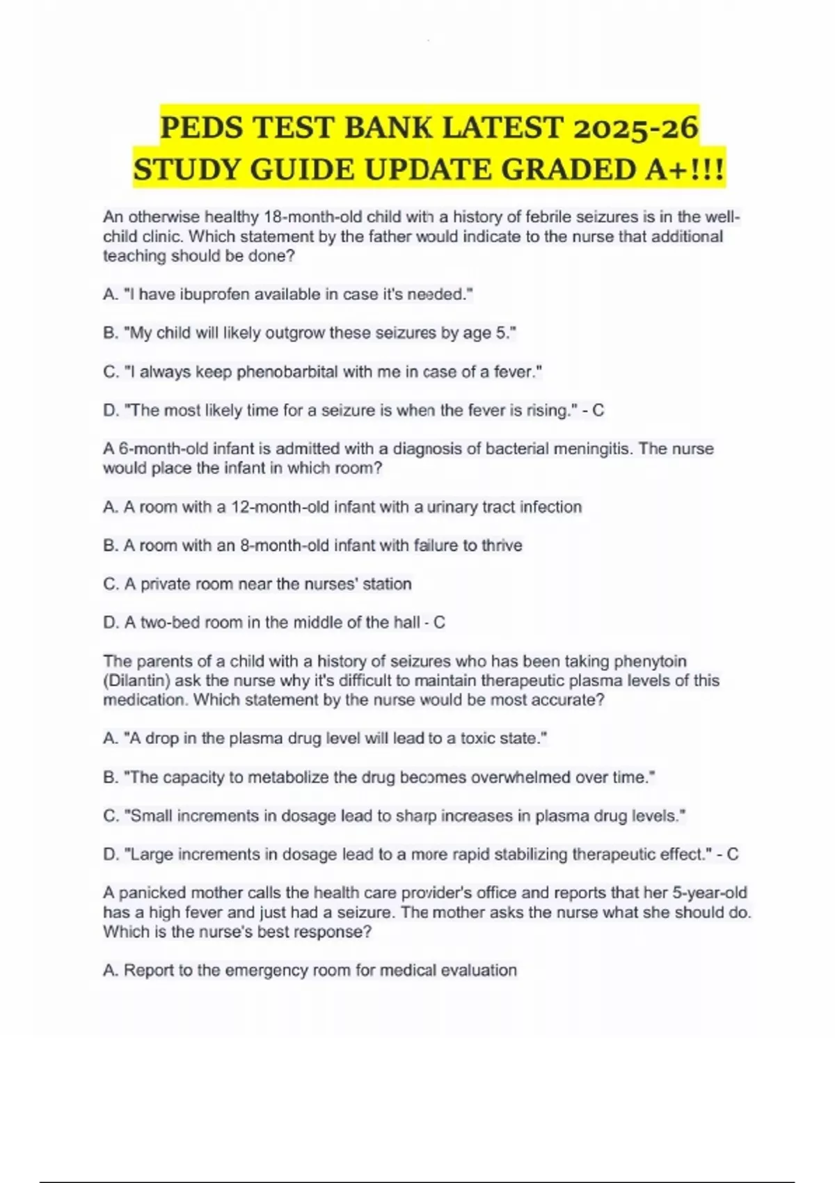 peds test bank latest 2025 26 study guide update