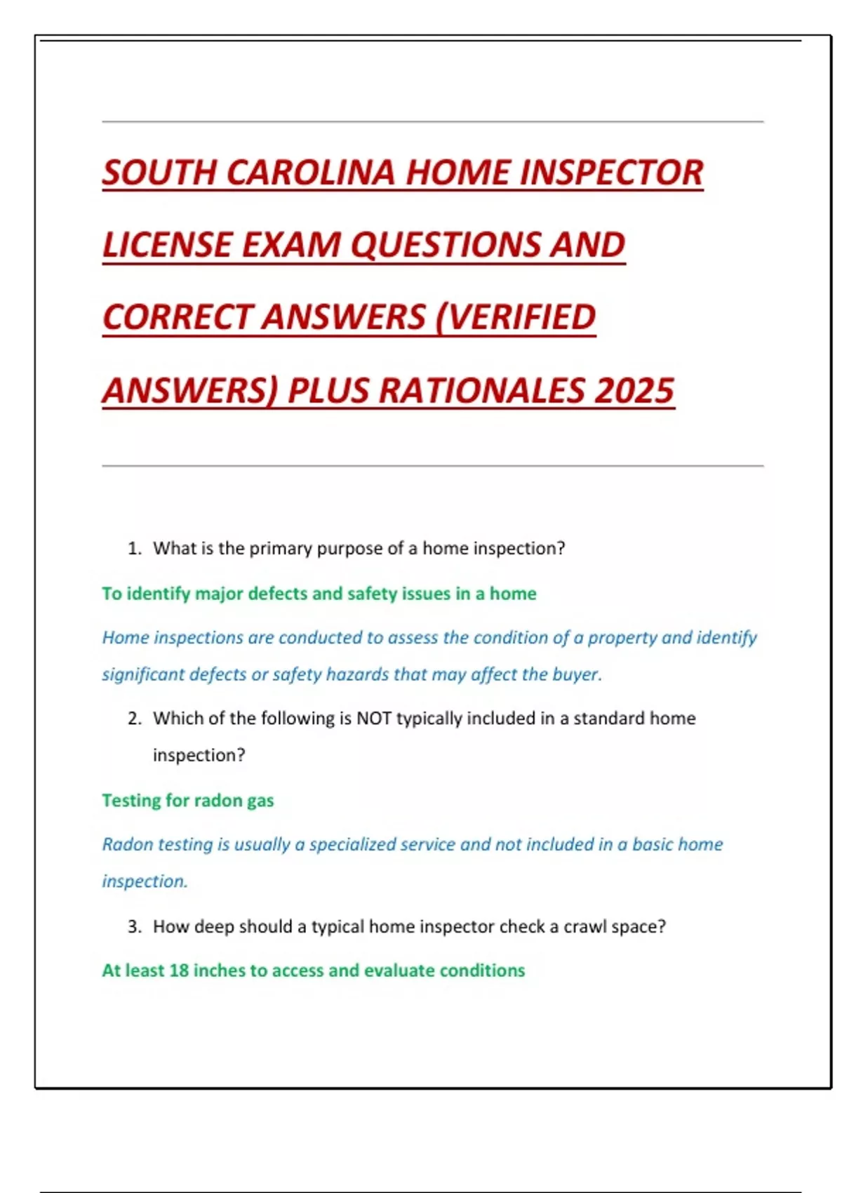 1. What is the primary purpose of a home inspection?