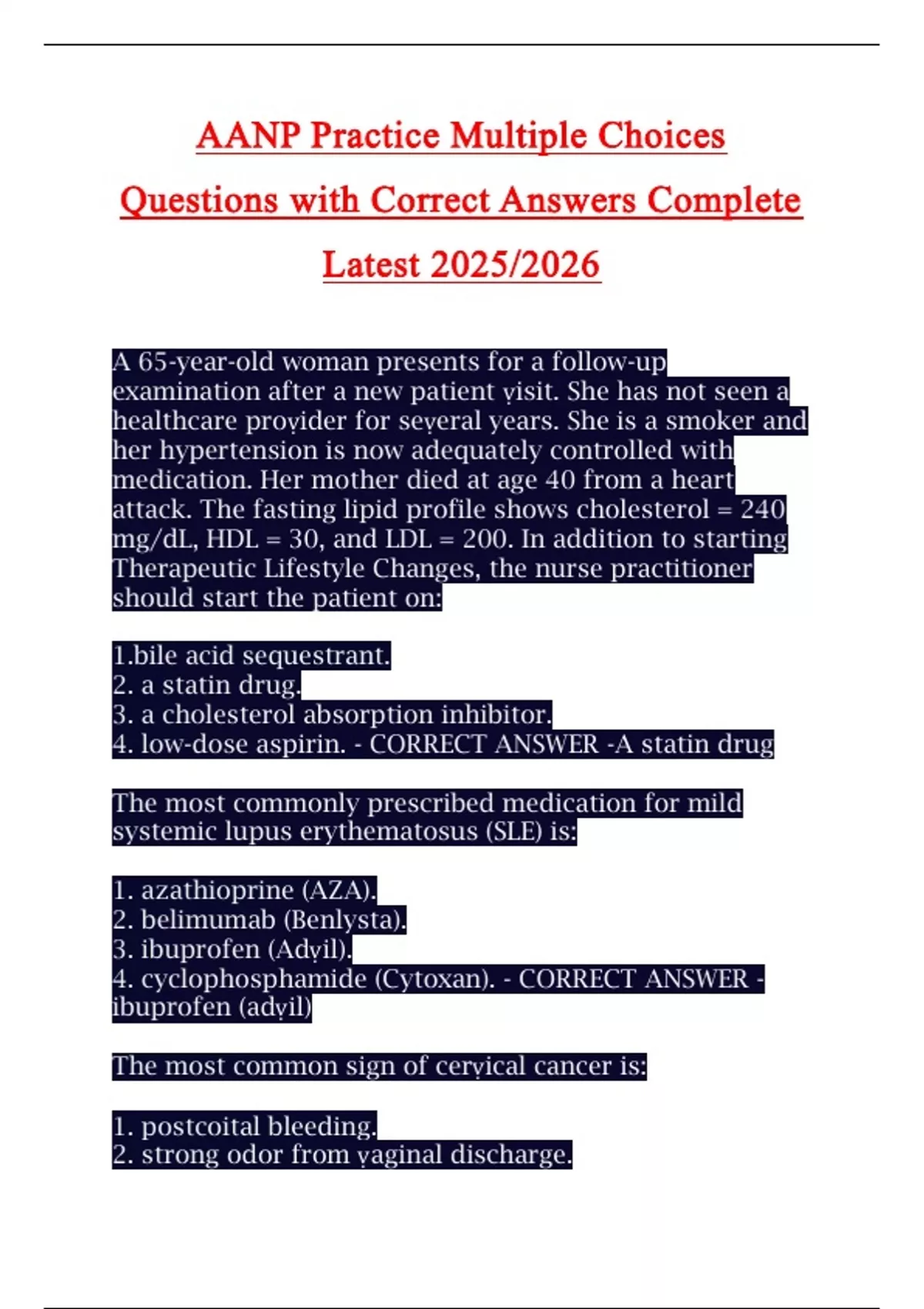 AANP Practice Multiple Choices Questions with Correct Answers Complete Latest
