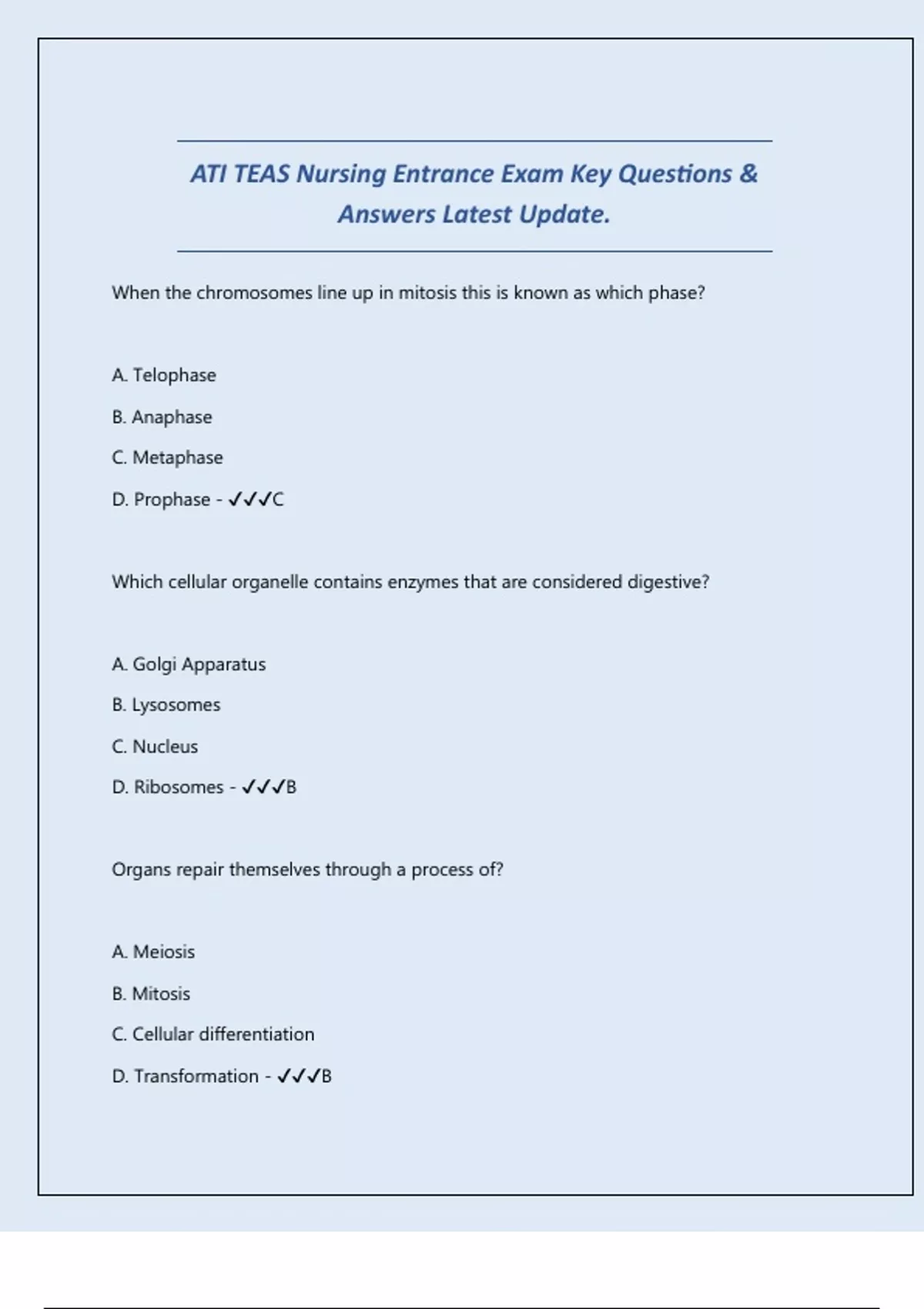ATI TEAS Nursing Entrance Exam Key Questions &