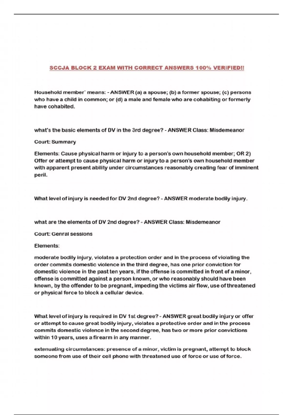 SCCJA BLOCK 2 EXAM WITH CORRECT ANSWERS 100% VERIFIED!!...