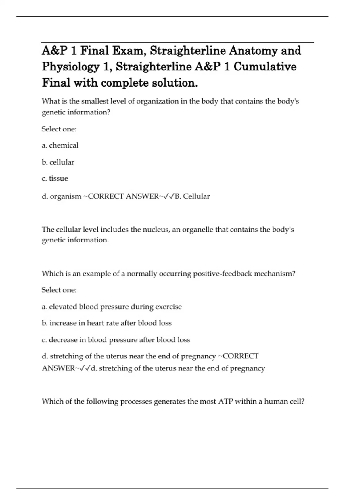 d. organism ~CORRECT ANSWER~✓✓B. Cellular
