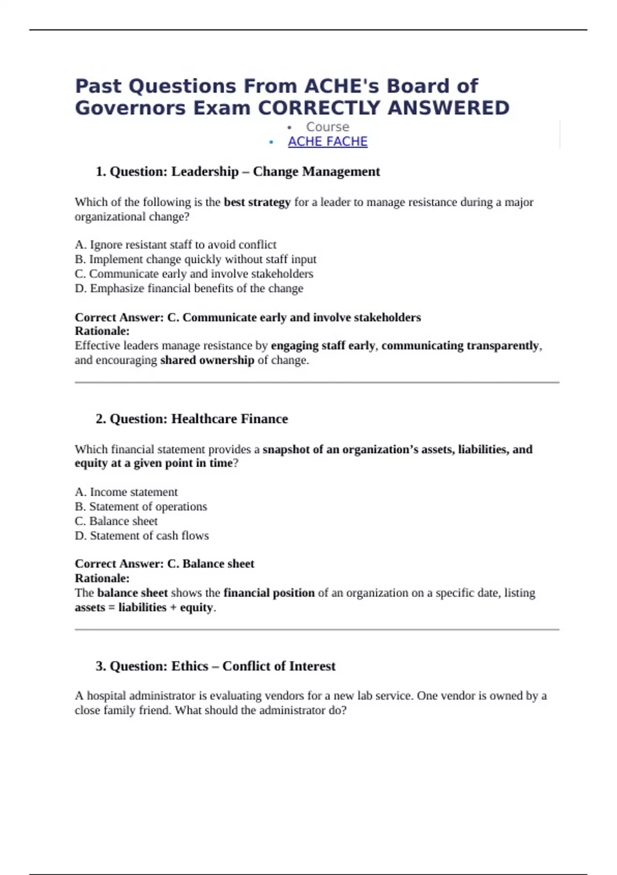 Which of the following is a fiduciary responsibility of a healthcare organization's Board of