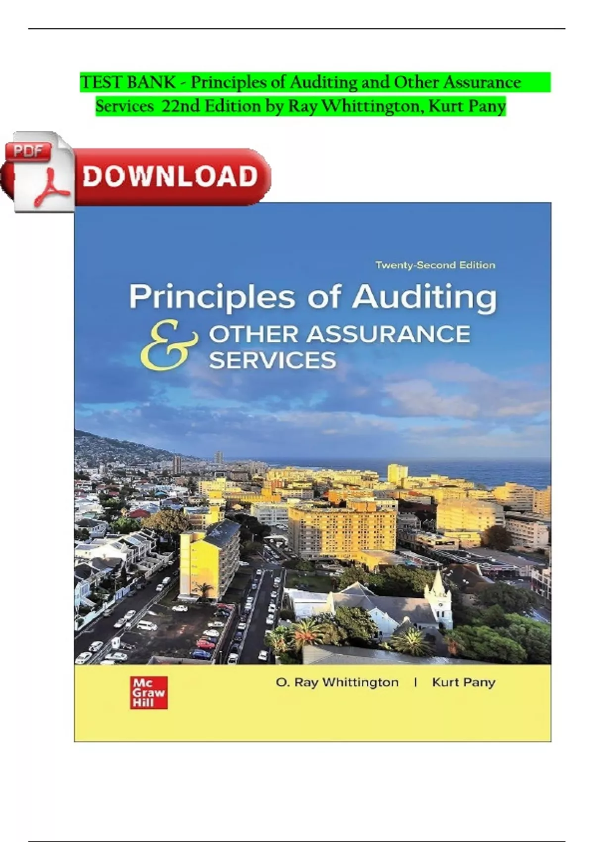 TEST BANK - Principles of Auditing and Other Assurance Services 22nd Edition by Ray Whittington, Kurt Pany| Complete Verified Chapter's Latest Newest Version