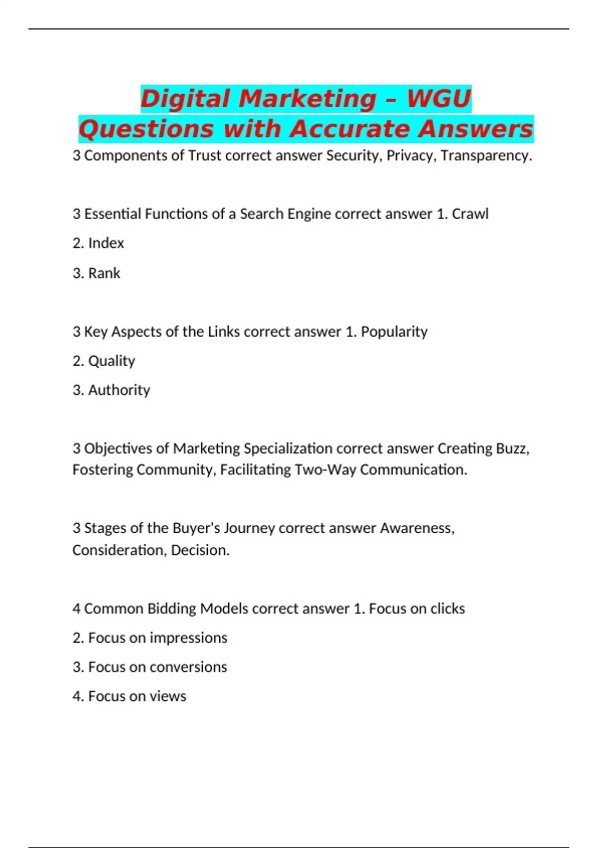 3 Components of Trust correct answer Security, Privacy, Transparency.