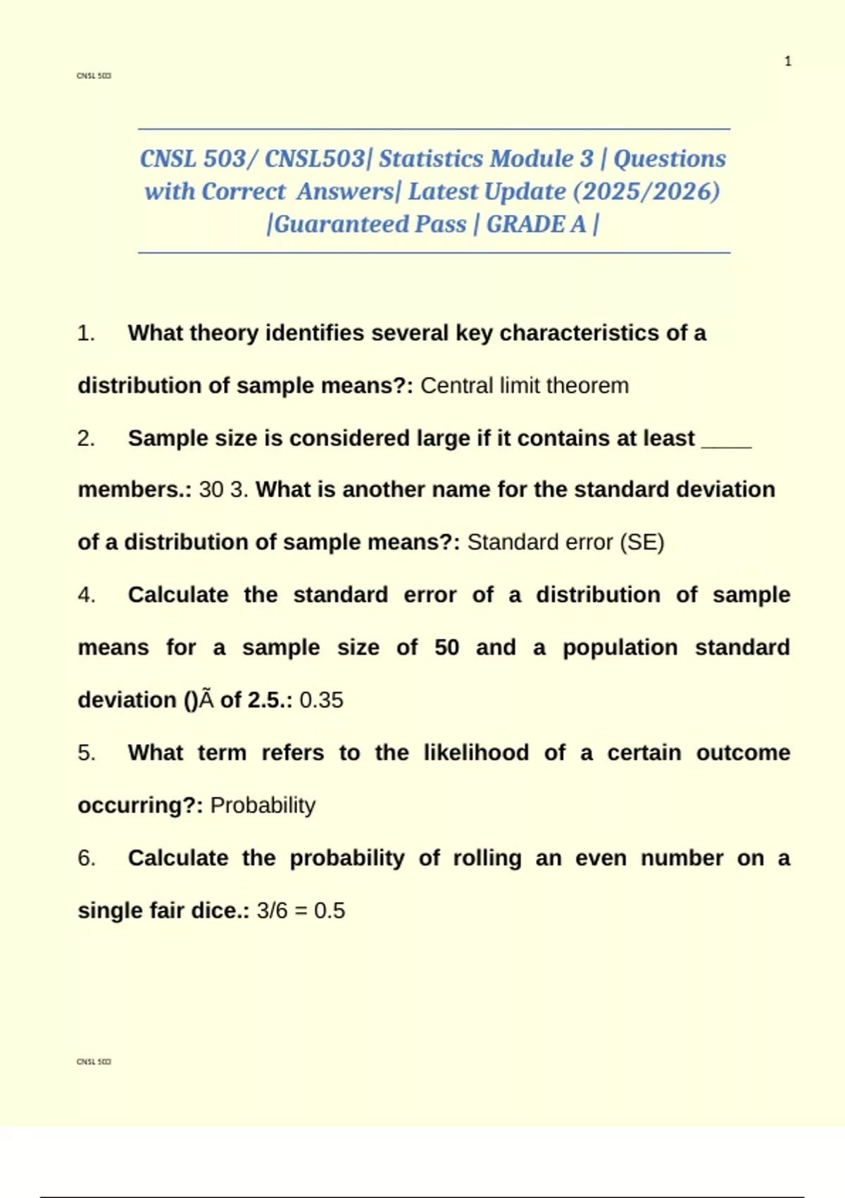 CNSL 503/ CNSL503| Statistics Module 3 | Questions