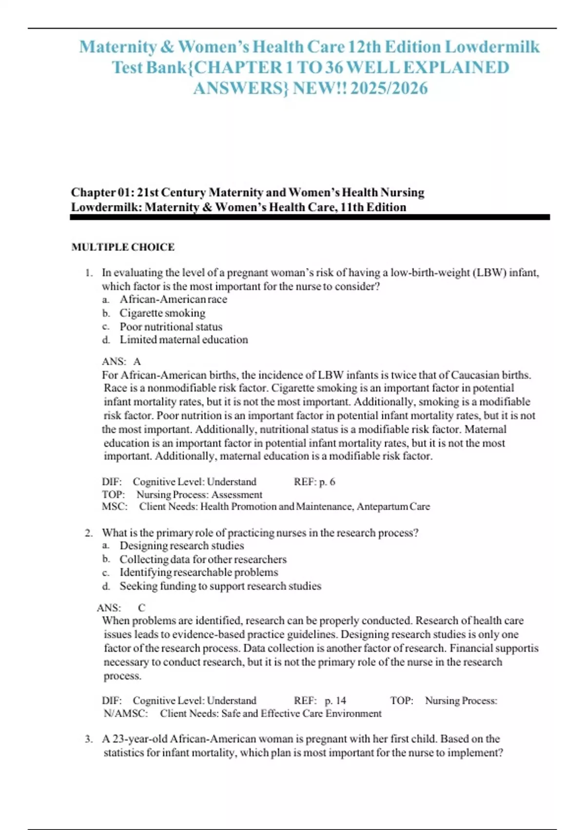 Test Bank{CHAPTER 1 TO 36 WELL EXPLAINED
