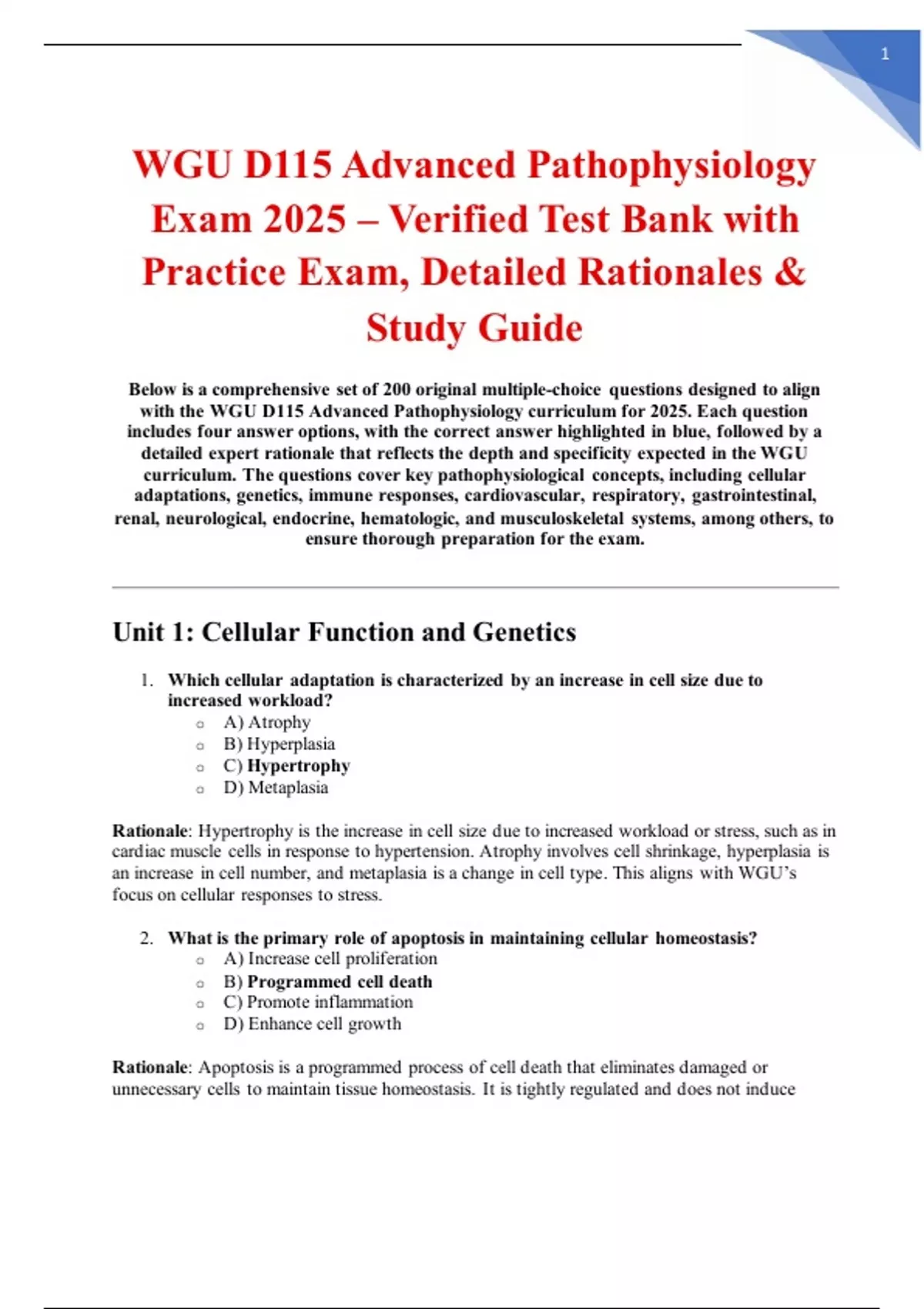 WGU D115 Advanced Pathophysiology Exam 2025 – Verified Test Bank with Practice Exam, Detailed Rationales & Study Guide