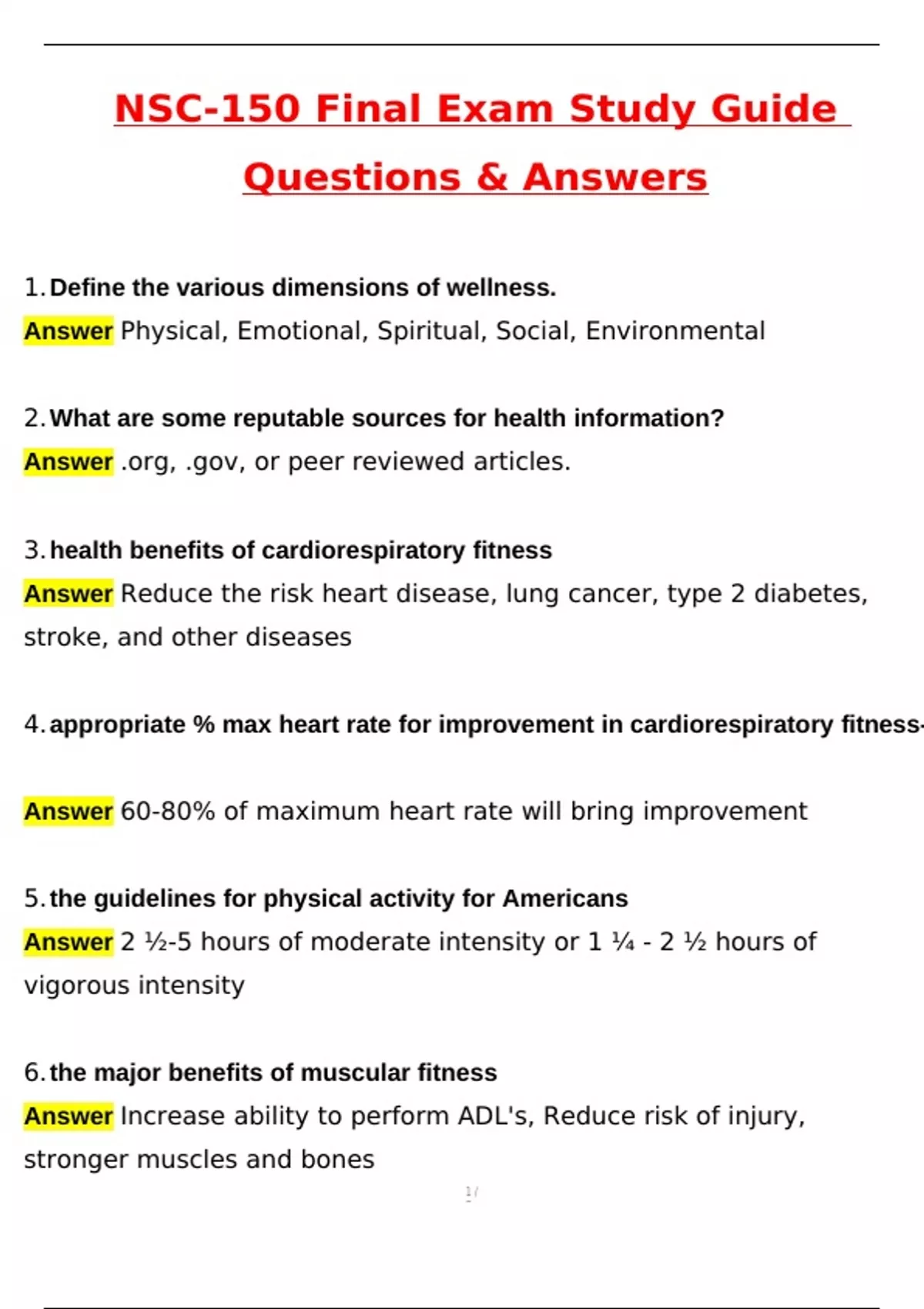 NSC 150 Final Exam Study Guide (Latest 2025 / 2026 Update) Questions and Verified Answers| 100% Correct| Grade A