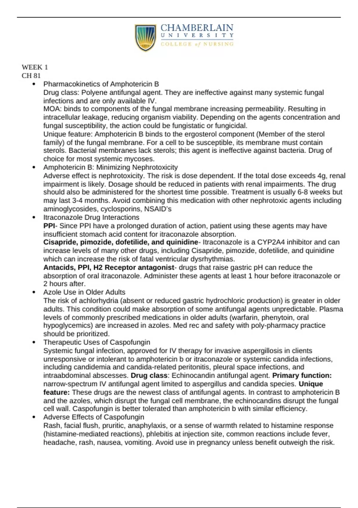 Unique feature: Amphotericin B binds to the ergosterol component (Member of the sterol