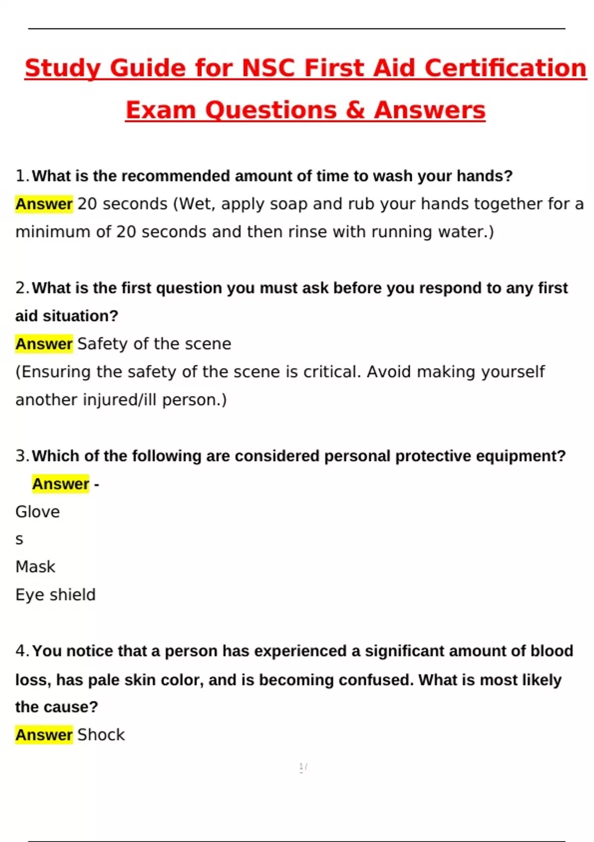 Answer Safety of the scene