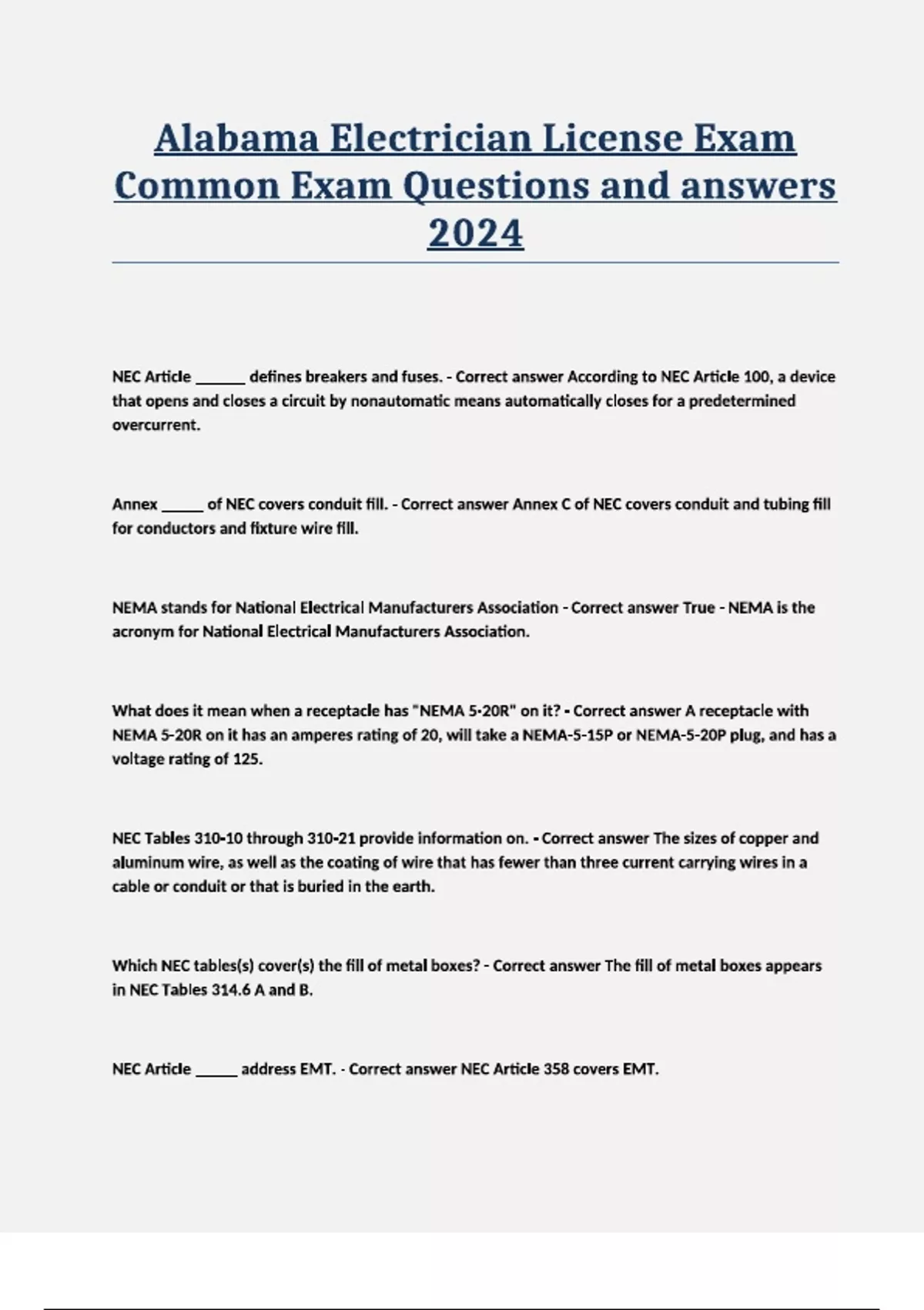 Alabama Electrician License Exam Common Exam Questions and Answers 2024Alabama Electrician License Exam Common Exam Questions and Answers 2024Alabama Electrician License Exam Common Exam Questions and Answers 2024Alabama Electrician License Exam Common Exam Questions and Answers 2024Alabama Electrician License Exam Common Exam Questions and Answers 2024